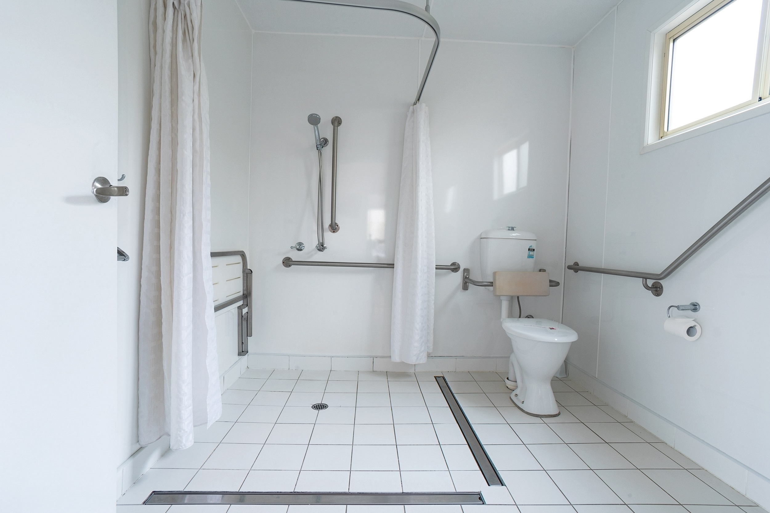 Our Wheelchair Accessible Two Bedroom Villa has been designed specifically for those with special needs to ensure you can enjoy a comfortable and safe holiday in a self-contained cabin. The bathroom is equipped with a fold down shower seat and railings, whilst the open plan layout ensures easy manoeuvrability for those using mobility aids. The spacious main bedroom includes a queen sized bed and LED flat screen TV, with a double bed and overhead bunk in the 2nd bedroom.