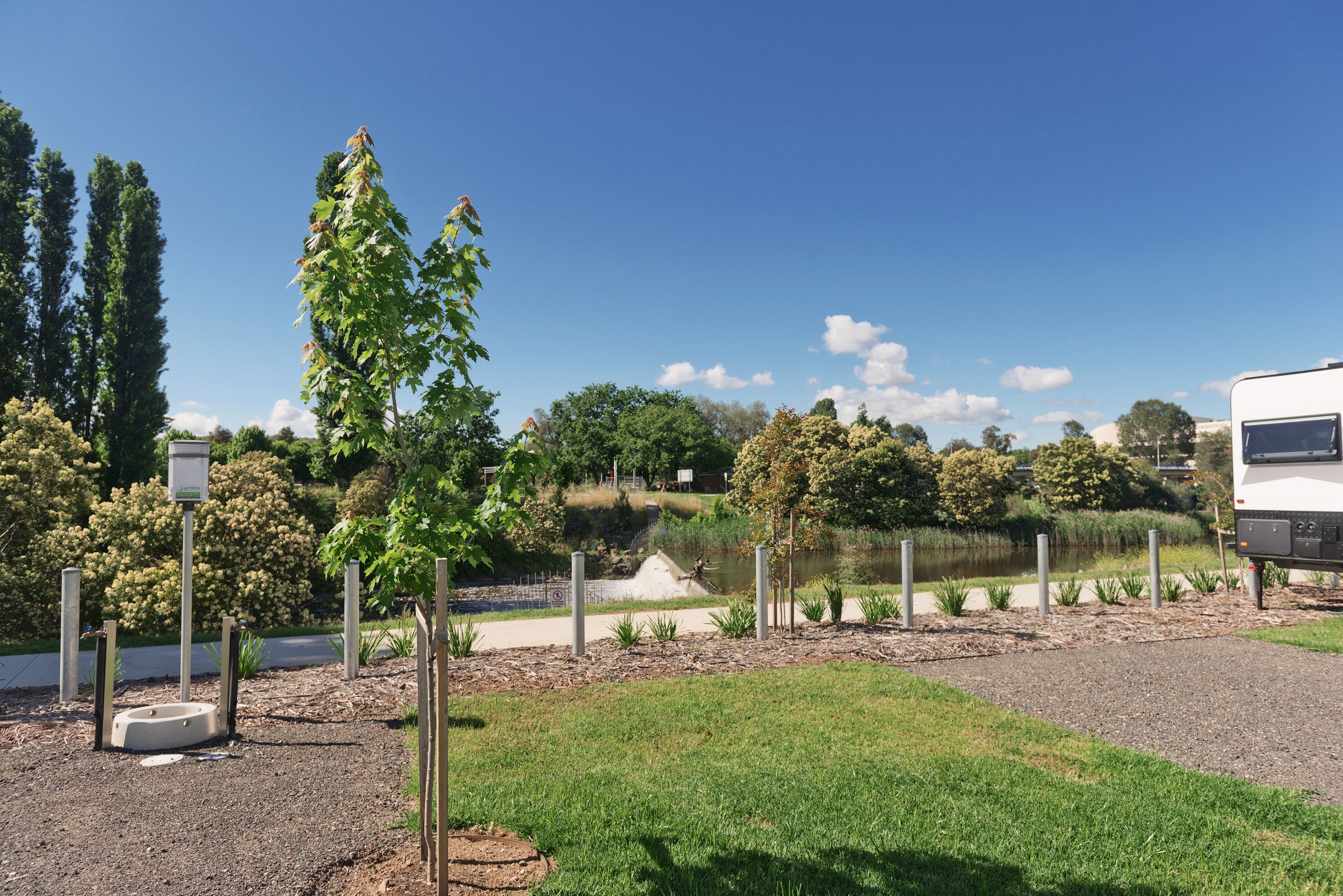 Riverview power sites are a perfect place to sit back and enjoy relaxing views of the Queanbeyan River flowing right past you. These sites can accommodate caravans, motorhomes and campervans and range between 6.7 and 9.7 metres in length and 7.5 and 9.4 metres in width.