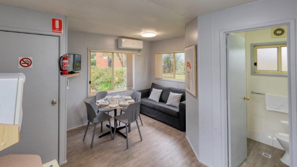 Featuring two bedrooms with cosy bedding arrangements, kitchenette and a stylish lounge-dining area complete with modern amenities such as reverse cycle air conditioning and television.