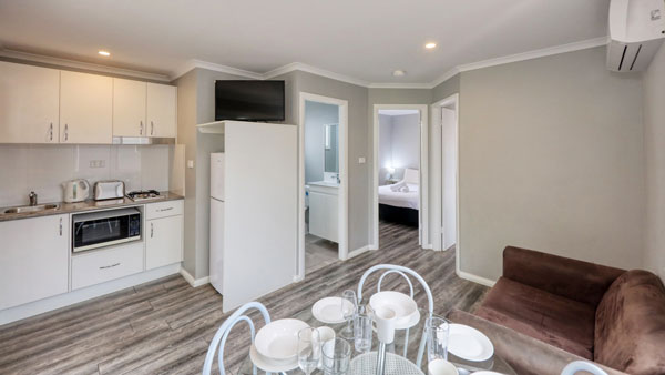 Experience a relaxing stay with modern amenities including reverse cycle air conditioning/heating and television. The modern lounge/dining area boasts a fully equipped kitchenette.
