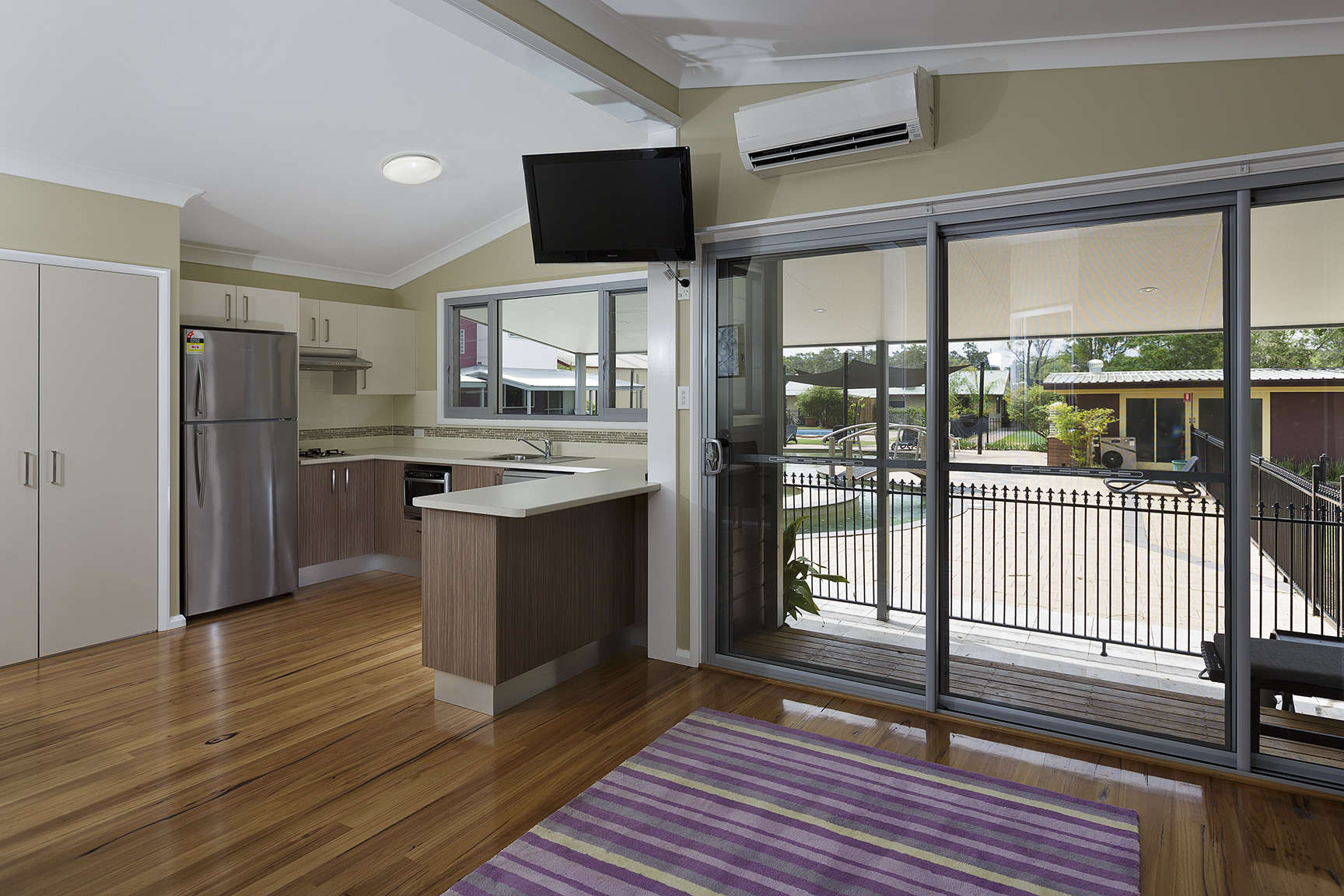 Experience modern poolside comfort. Our 2 Bedroom Villas sleep up to four guests with a king bed and ensuite in the main bedroom and two king single beds in the second bedroom, as well as a bathroom, living area, kitchen, and spacious outdoor deck with BBQ, all with access to the pool.