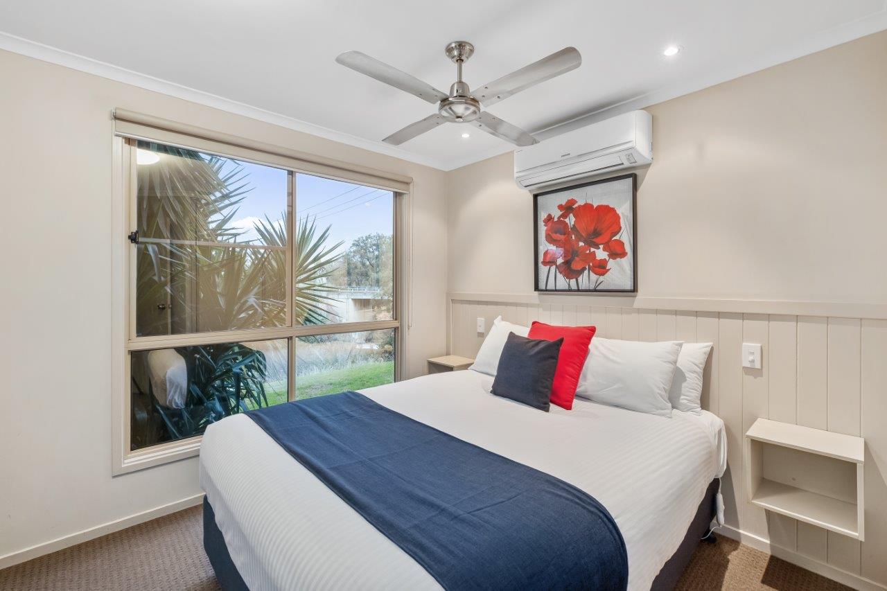 With 3 bedrooms—two featuring queen beds and the third with 2 singles—this space sleeps 6. Each bedroom has its own TV for your entertainment. Reverse cycle air-conditioning and whip up meals in the fully equipped kitchen, complete with a full-size fridge, gas cooktop, convection microwave, and dishwasher. Relax in the roomy lounge with a leather sofa, large TV, and dining table. Plus, we’ve got a washing machine and dryer for your convenience.