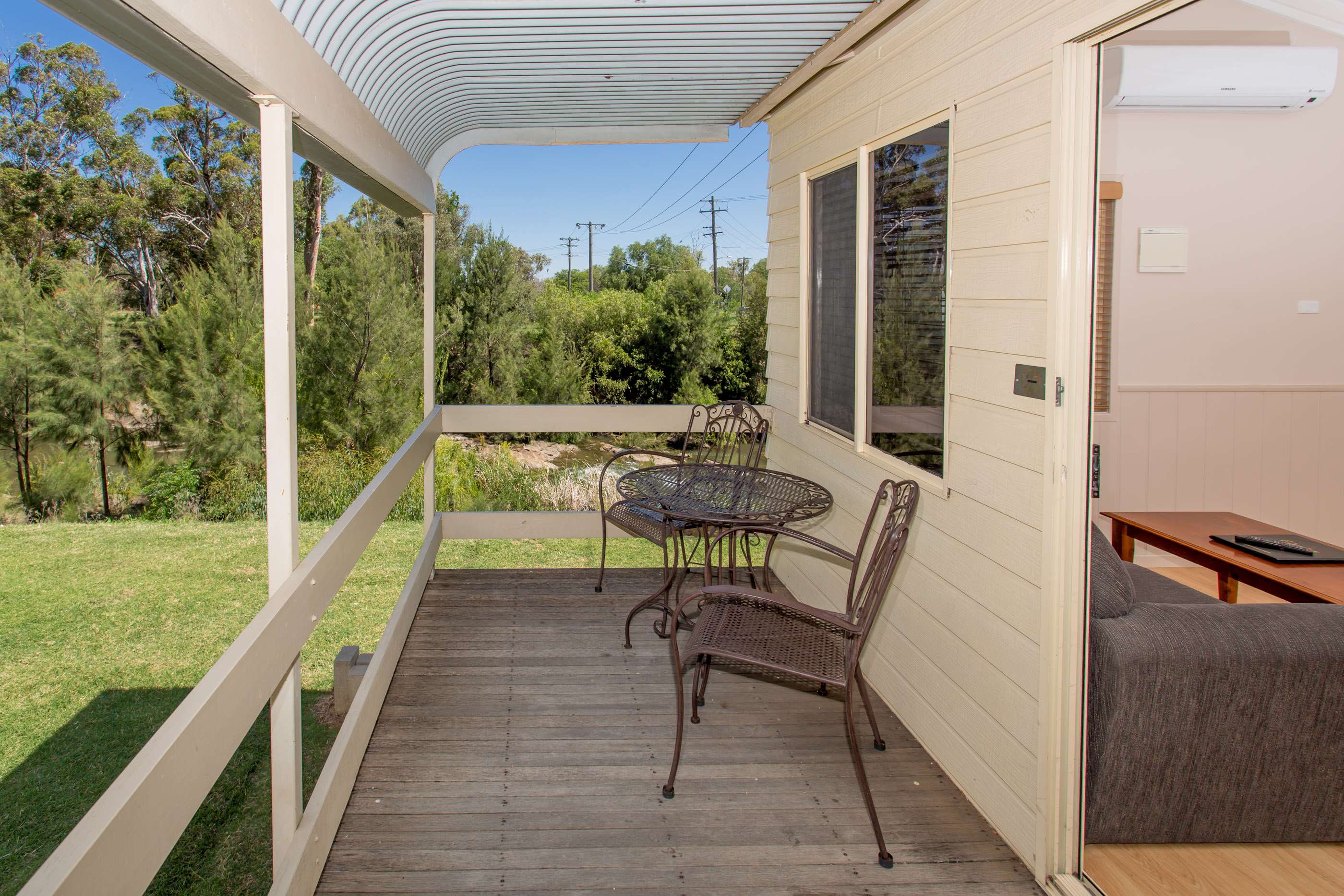 Changes and Cancellations – In the event of a cancellation the following will apply to all payments made: * Cancellations within the Country Music Festival period requires eight weeks' notice. * All other bookings require a minimum of one weeks' notice (unless stated otherwise). * Otherwise all fees will be forfeited. * All cancellations incur a $25 cancellation fee (unless stated otherwise). * Fees are not refundable if your stay is shortened. Refunds by cheque or credit card only. Changes to bookings can be made subject to availability and at managements discretion. Reception hours are Monday to Sunday 9am–6pm. Guests arriving after 5pm or outside these times must contact park reception during reception hours to make alternate arrangements. Special requests are on request basis only and are not guaranteed at the time of booking. Please contact the park for confirmation. A credit card must be produced in the name of the person staying at the park on check-in. Any damage caused may be charged against that card. A minimum stay of [10] nights applies in cabin/villa accommodation during peak season, a minimum of [3] nights on long weekends and holiday periods (i.e. Easter and Christmas), and a minimum of [2] nights on other weekends. No bookings on sites during the month of January. Extra person rates apply to persons aged two years and above. There is no charge for a child under the age of two years. With the exception of medically certified guide dogs, dogs and other animals are not permitted. Check-out time is 10am. Late check-outs can be arranged for an additional fee if there is availability, please contact park if required. Check-in time is from 2pm. If you will be arriving late (outside of reception hours) please notify reception before 5.00pm on the day of your reservation. All linen is provided in the East and Riverview Villas. Other cabin accommodation has the main bed only made up with linen (Split bookings will incur an additional linen fee) Extra persons charge: will be supplied with a linen pack.