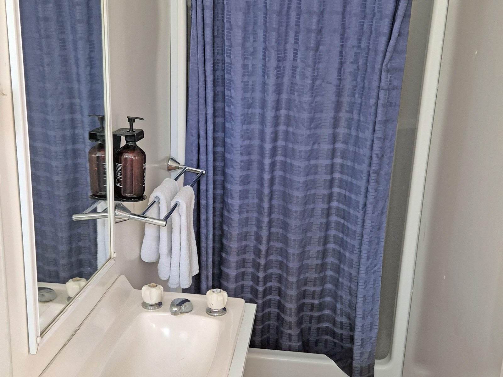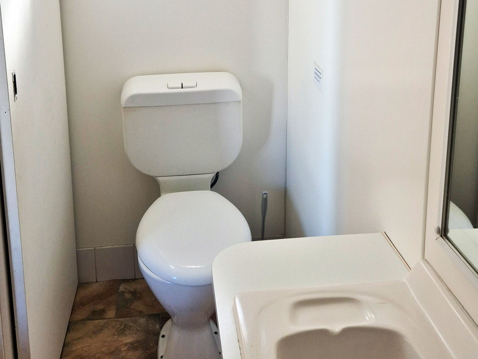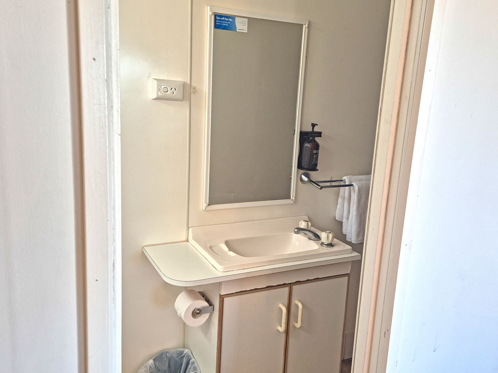 The kitchenette is equipped with an electric cooktop, microwave, toaster, and full-size fridge, making it easy to prepare simple meals. Air-conditioning, a TV, and a dining area offer a comfortable and practical space for short or extended stays.
