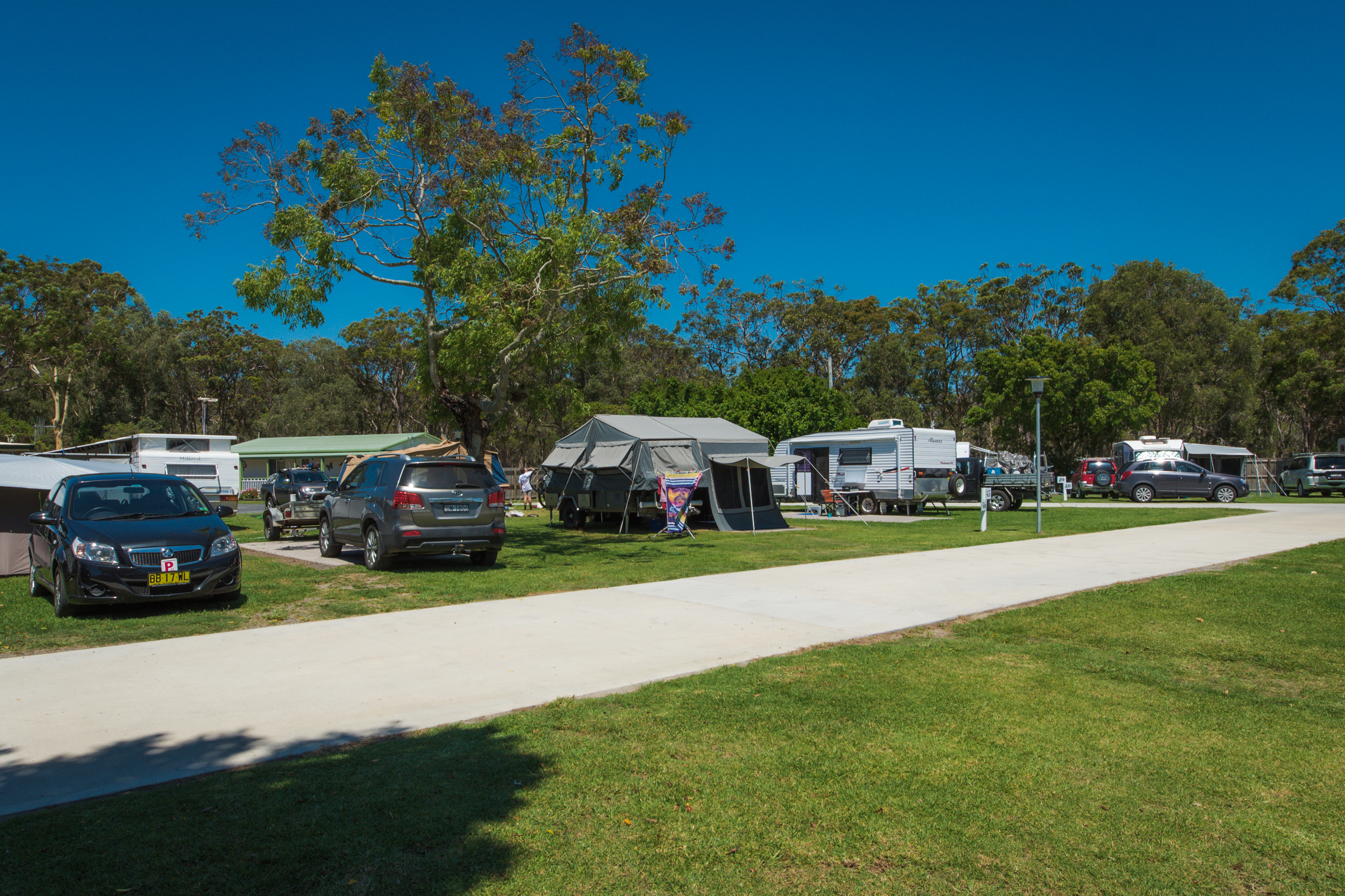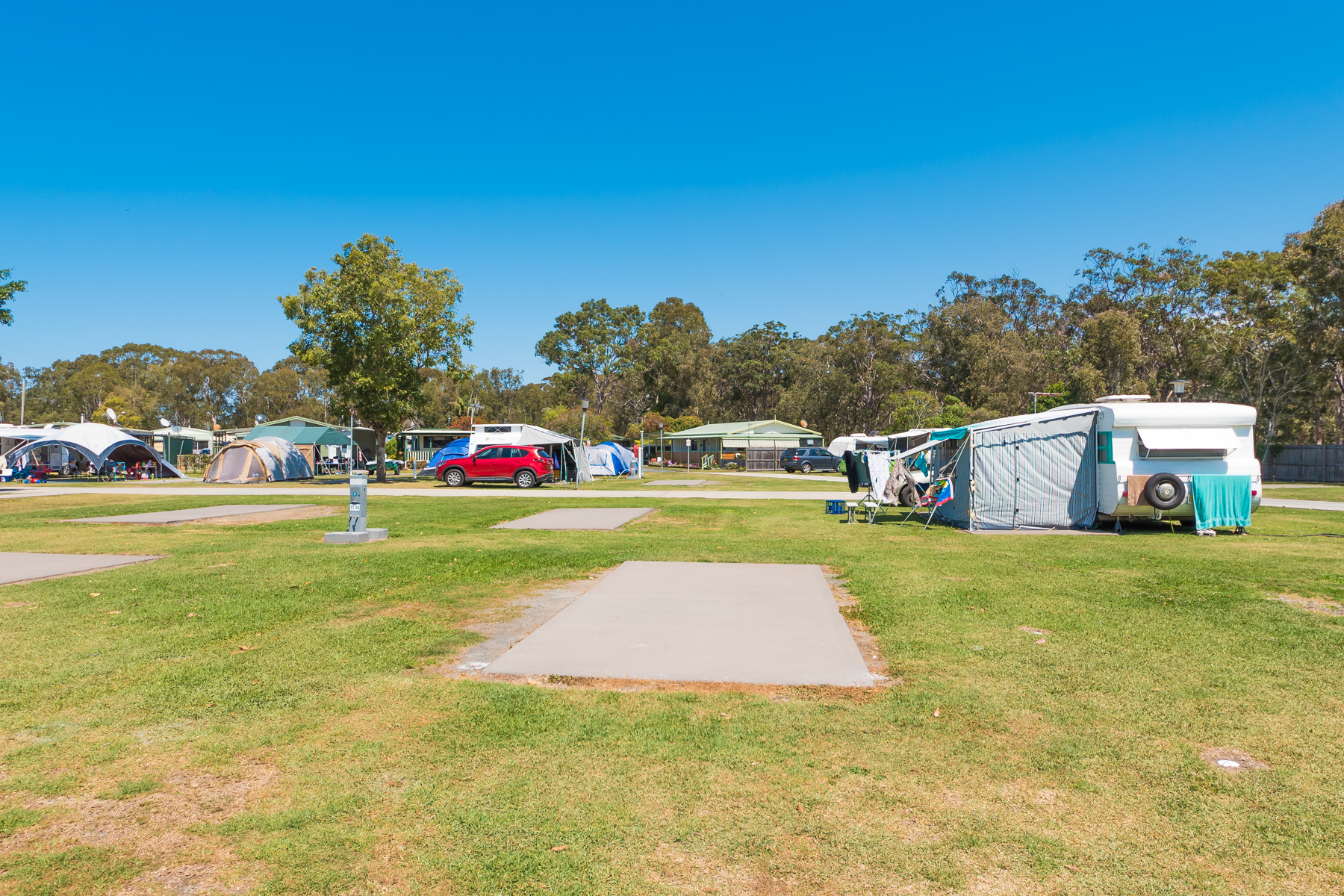 Each site features a power connection, concrete slab, freshwater tap, and grey water disposal. Need a drive-through site? Just ask – we can accommodate up to 20m!