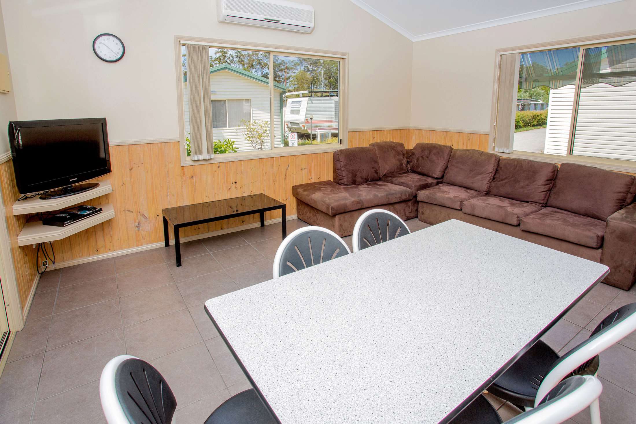 It features a queen bed and a bunk with double below and single above. Enjoy a full kitchen, cosy lounge with TV, and private deck with outdoor dining. The highlight? A relaxing spa bath for the ultimate retreat. With air conditioning, linen provided, and all the comforts of home, it's perfect for a coastal escape.