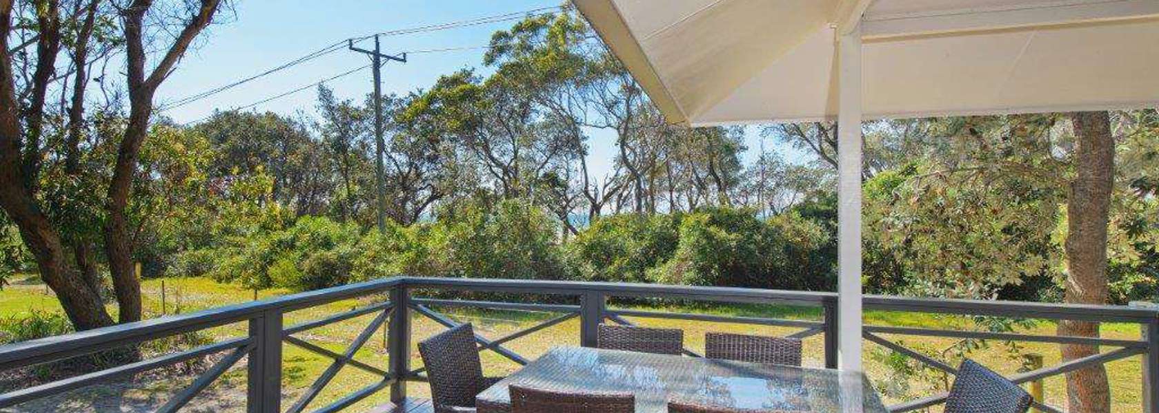 Enjoy beachside cottage living. Our Beachside Cottages sleep up to five guests with a queen bed in the main bedroom and a single bed and bunk in the second bedroom, as well as a bathroom, living area, kitchenette and private deck, all just a short walk from the beach.