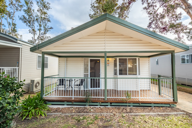 Experience all the luxuries of modern living. Our 2 bedroom Deluxe Cabins sleep up to three guests with a queen bed in the main bedroom and a single bed in the second bed plus trundle available on request, as well as a bathroom, living area, kitchen, and private deck.