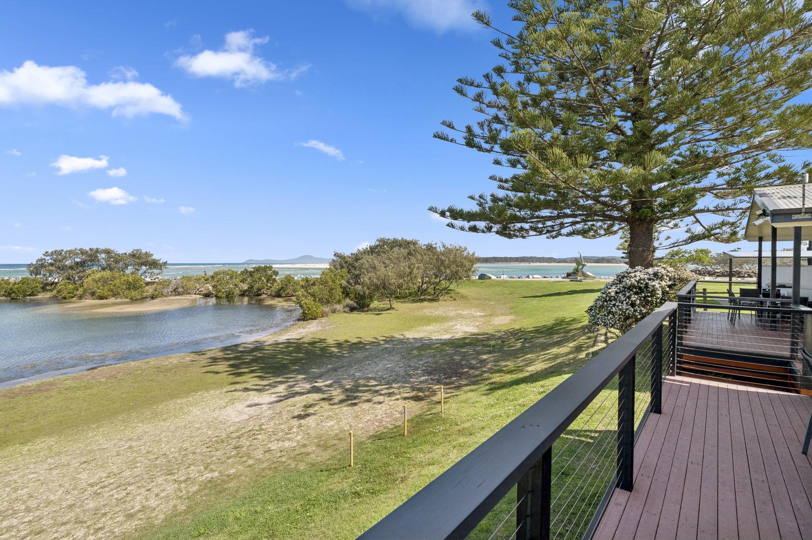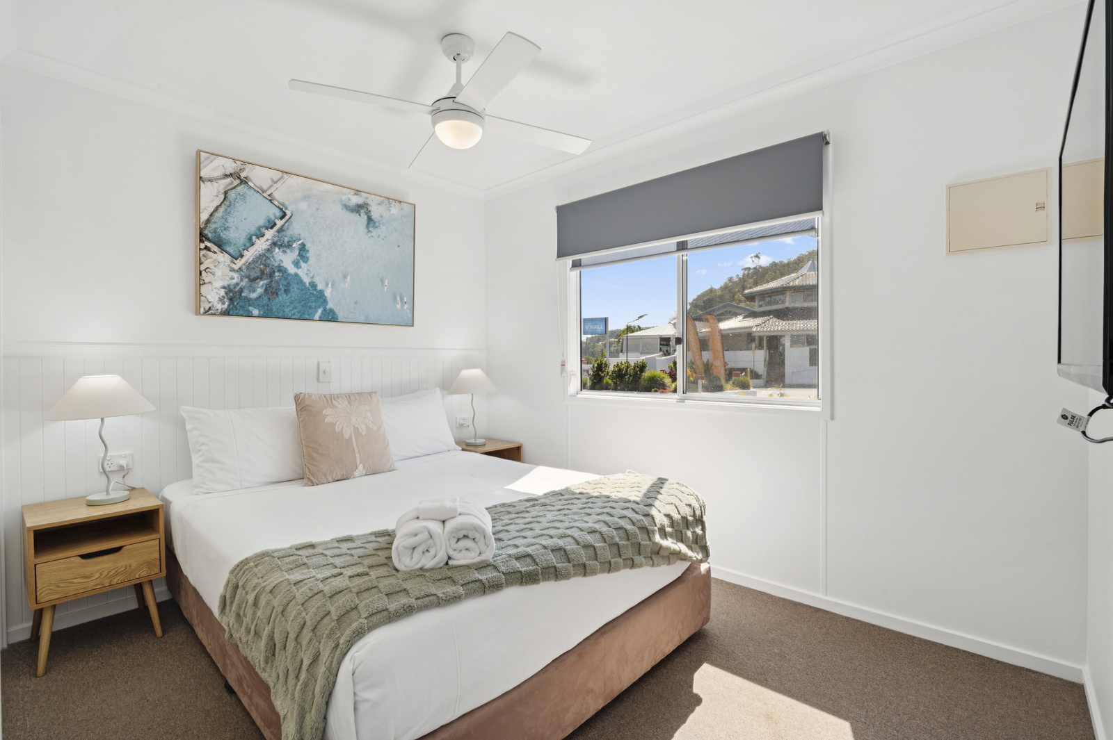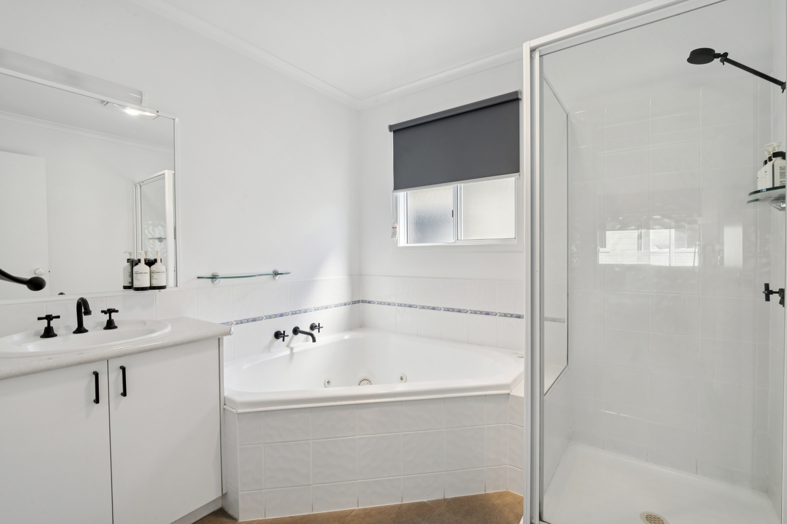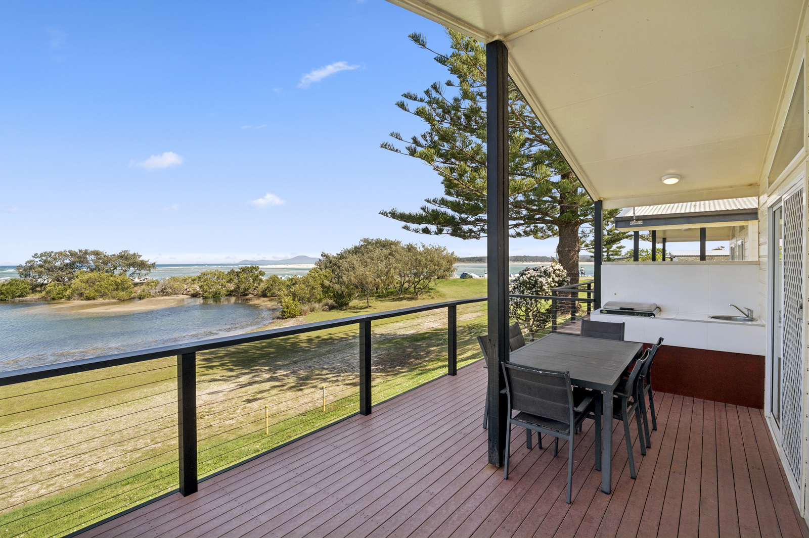 Experience a relaxing and luxurious stay on the waterfront. Our Waterfront Deluxe Spa Cabin sleeps up to five guests with a queen bed in the main bedroom and a bunk plus single bed in the second bedroom, as well as a bathroom with corner spa, living area, kitchen and private deck with spectacular water views.