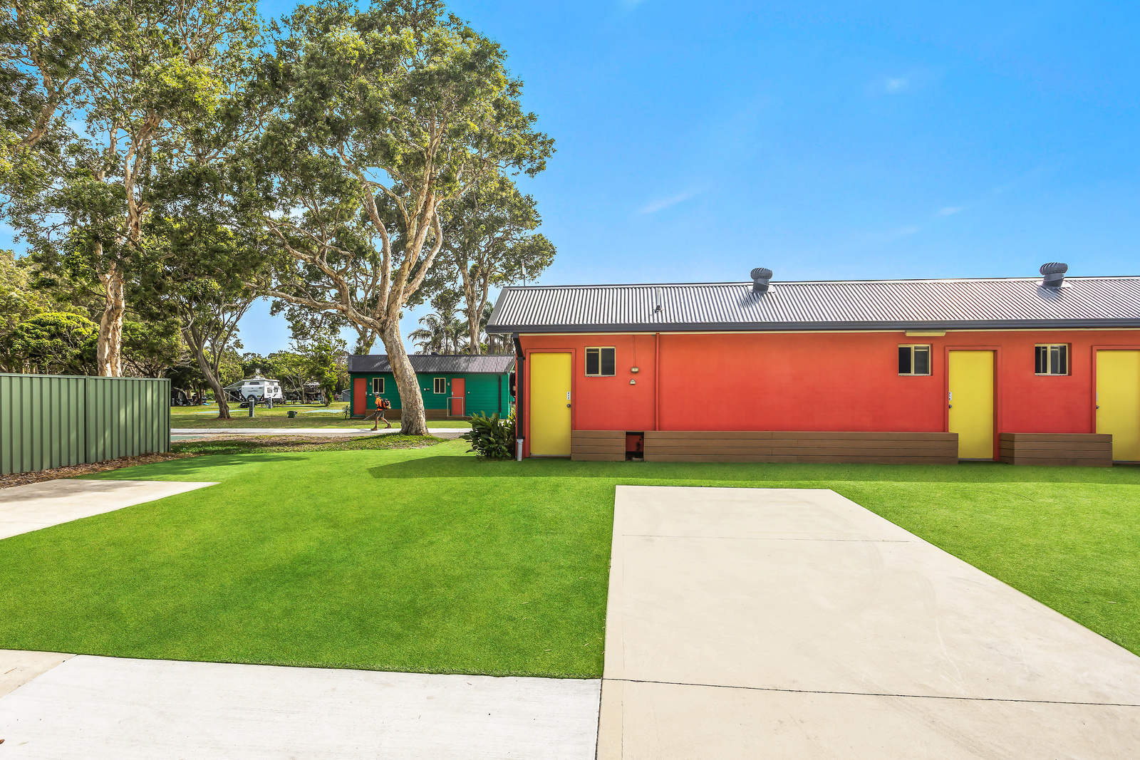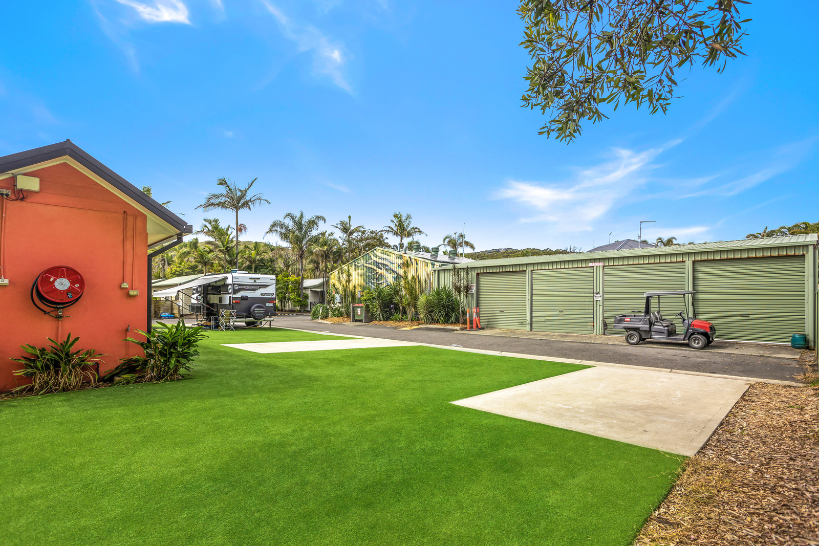 Enjoy the comfort of your transportable home with extra privacy located on a slab. These Ensuite Slab Sites offer a spacious bathroom with shower, toilet and vanity as well as power, plus easy access to the camp kitchen, pool, and games room.