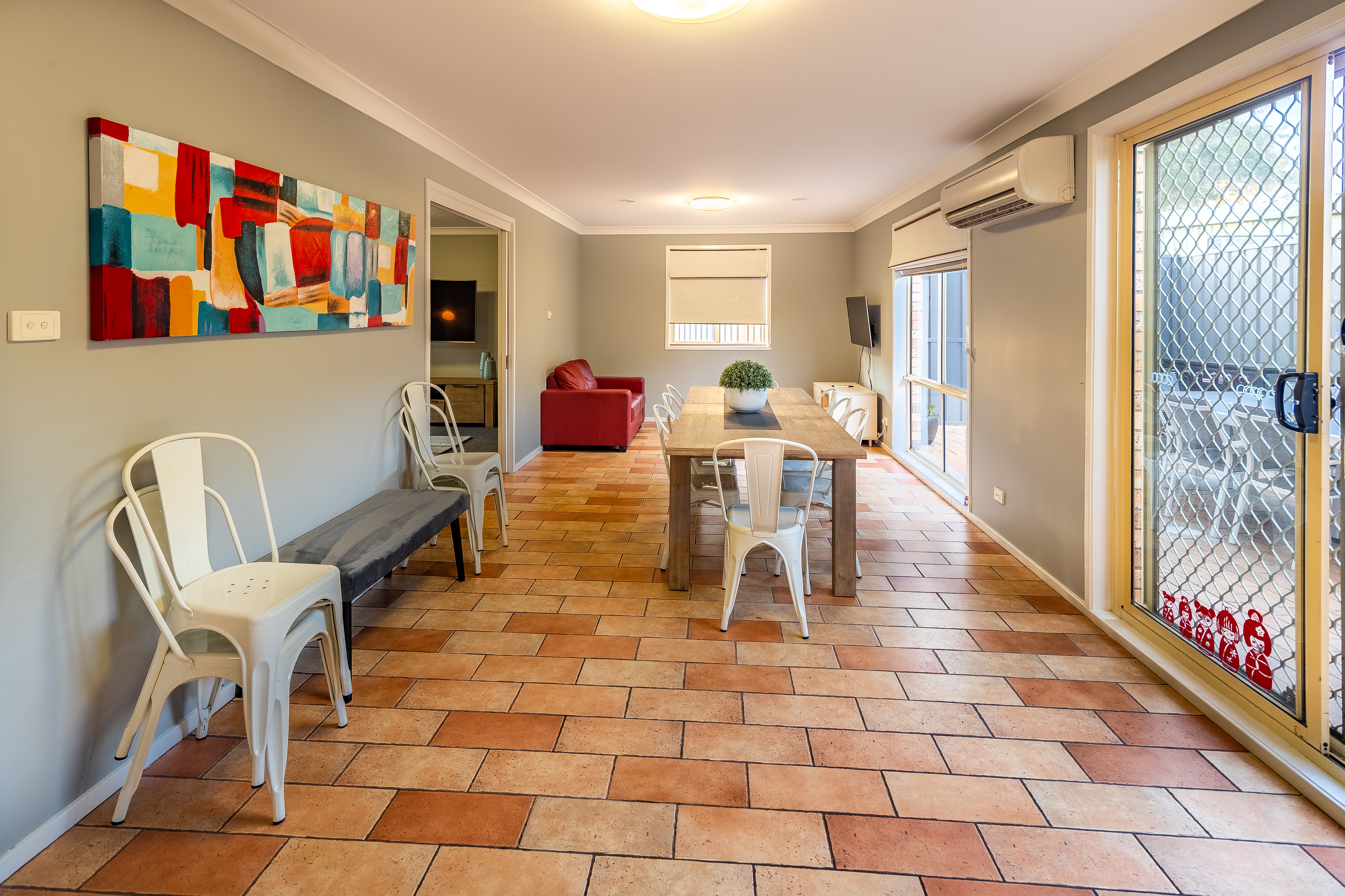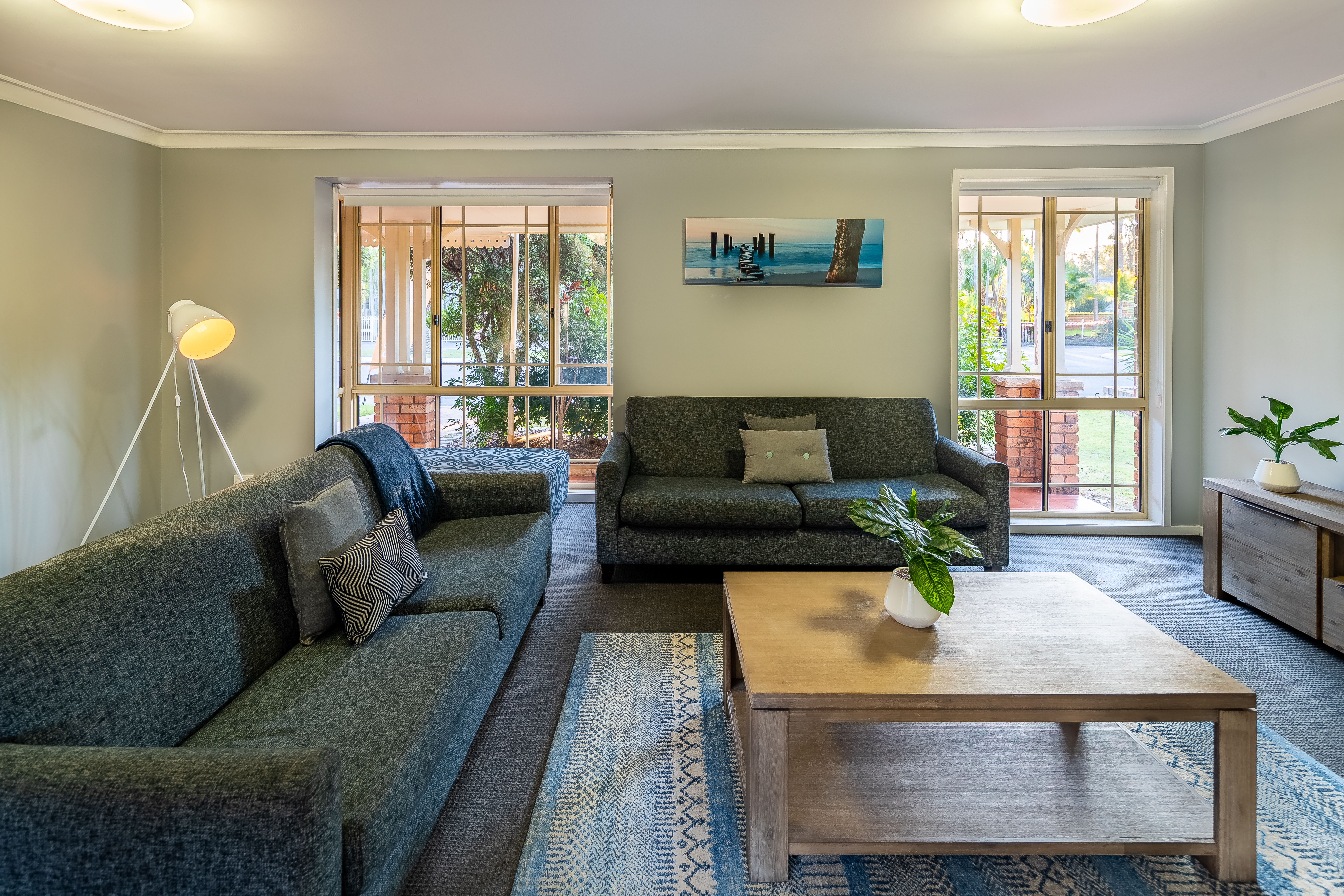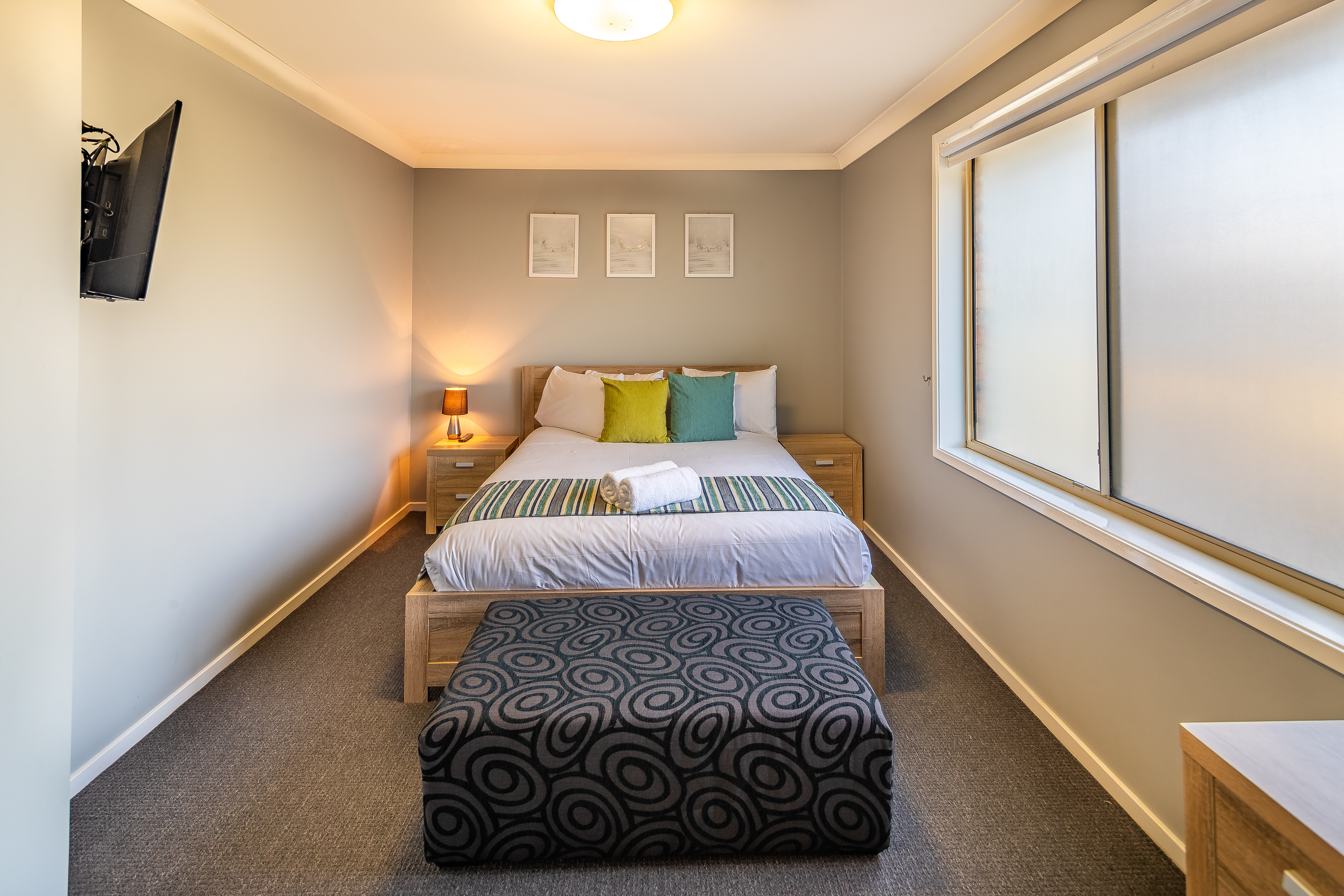 For those seeking a home away from home. Our Holiday House is centrally located above the park's reception office, offering two storeys and easy access to park facilities. The House sleeps up to twelve guests, with a queen bed and ensuite with corner spa in the main bedroom, a queen bed in the second bedroom and two bunks in the each of the third and fourth bedrooms, as well as an additional bathroom, living room, fully equipped kitchen and private courtyard with BBQ, plus parking for two cars.