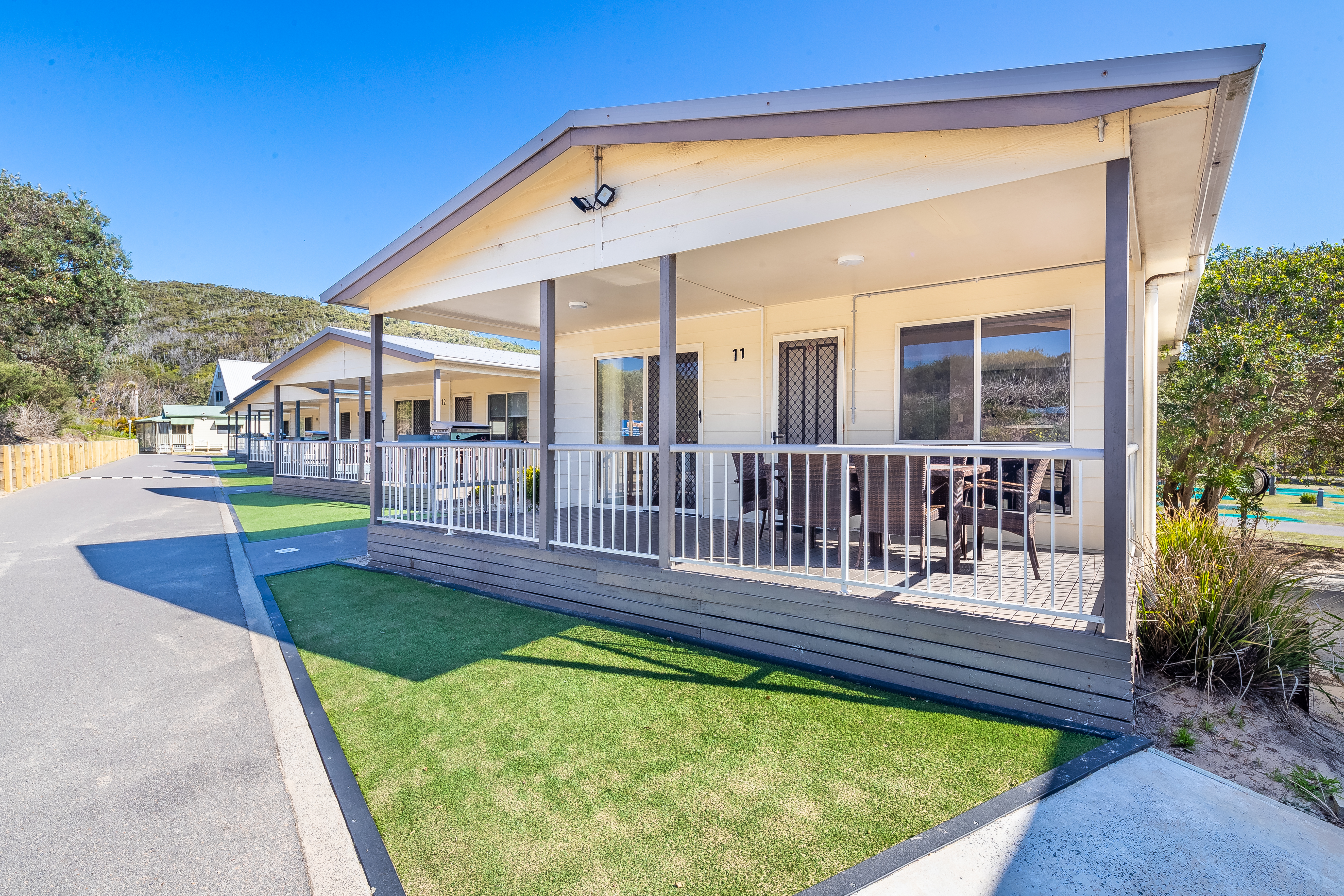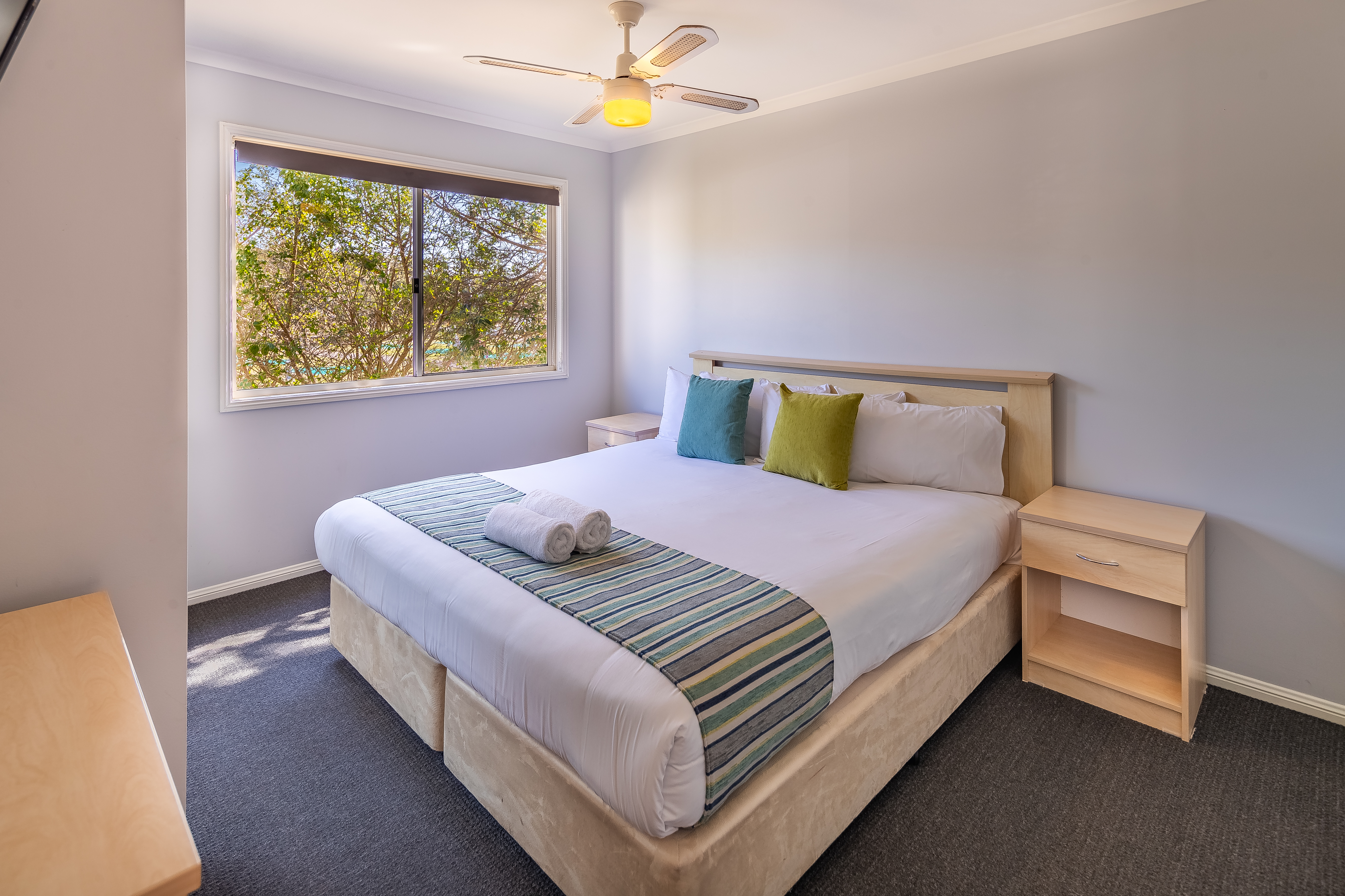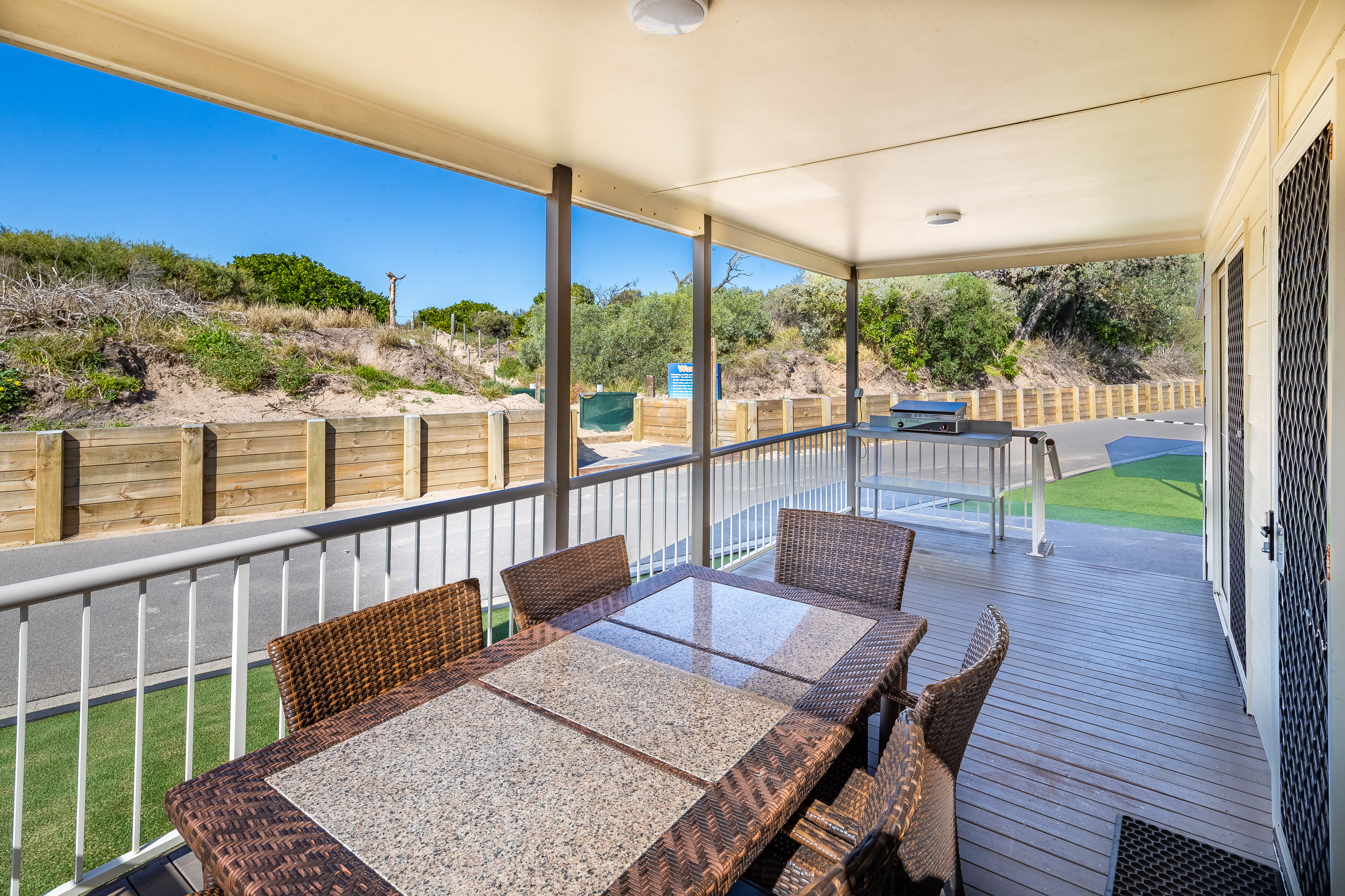 Experience a comfortable and spacious stay right behind the sand dunes of One Mile Beach. Our Three Bedroom Villas sleep up to six guests with a king bed in the main bedroom and two singles in the second and third bedrooms, as well as a bathroom, living area, kitchen, and deck with BBQ.