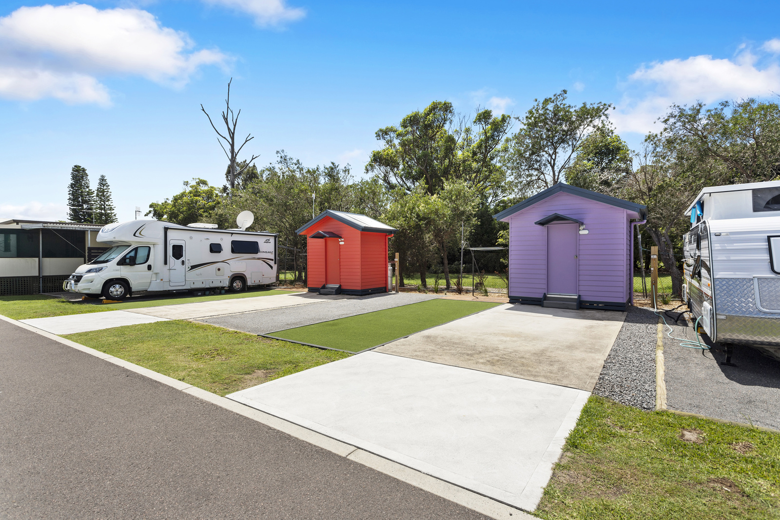 Our Ensuite Laundry Caravan Sites offer a private bathroom with shower & toilet, and your very own washing machine and dryer. Each site has evergreen turf for your annex and a car space beside your site.