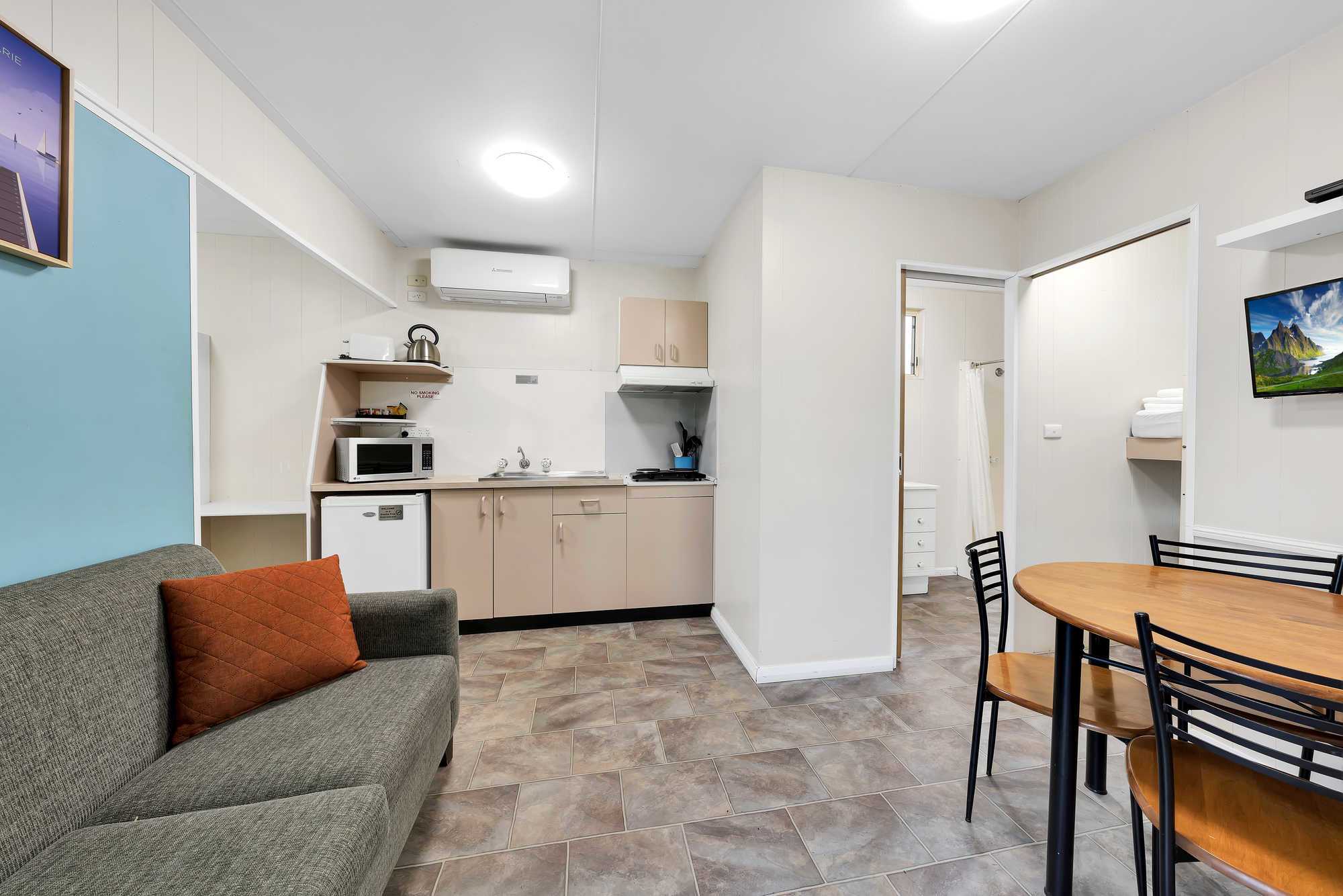 Choose a comfortable budget option. Our Standard Cabins sleep up to four guests with a double bed and a bunk, as well as an ensuite bathroom, living area, kitchen, and private deck.
