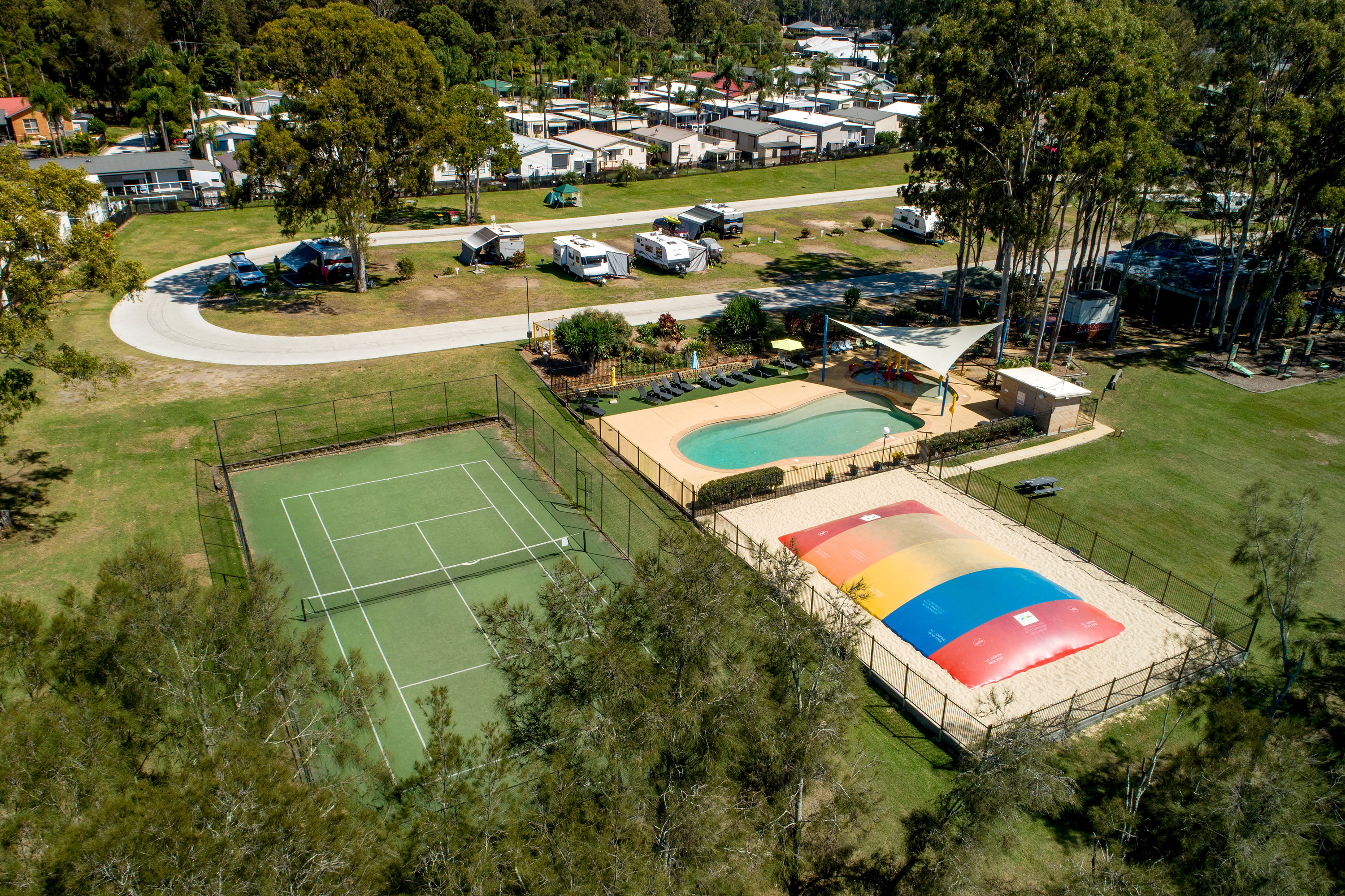 BIG4 Karuah Jetty Holiday Park is situated on 28 picturesque acres right on the shores of the peaceful Karuah River with bushland surrounds. Our pet friendly Port Stephens caravan park offers are range of caravan and camping sites and self contained family bungalows and villas to suit all travellers. Perfect for a family holiday with fun kid-friendly facilities, including a pool and splash play area, giant jumping pillow, playground, pedal go-karts for hire and a 250 metre long private jetty for great fishing. Conveniently located 5 minutes from the highway for overnight stops, only 2.5 hours from Sydney and just 50 minutes north of Newcastle. It's really up to you as to how much or how little you want to do! It's a great place to get the kids outdoors or just relax and enjoy a bit of peace and quiet!