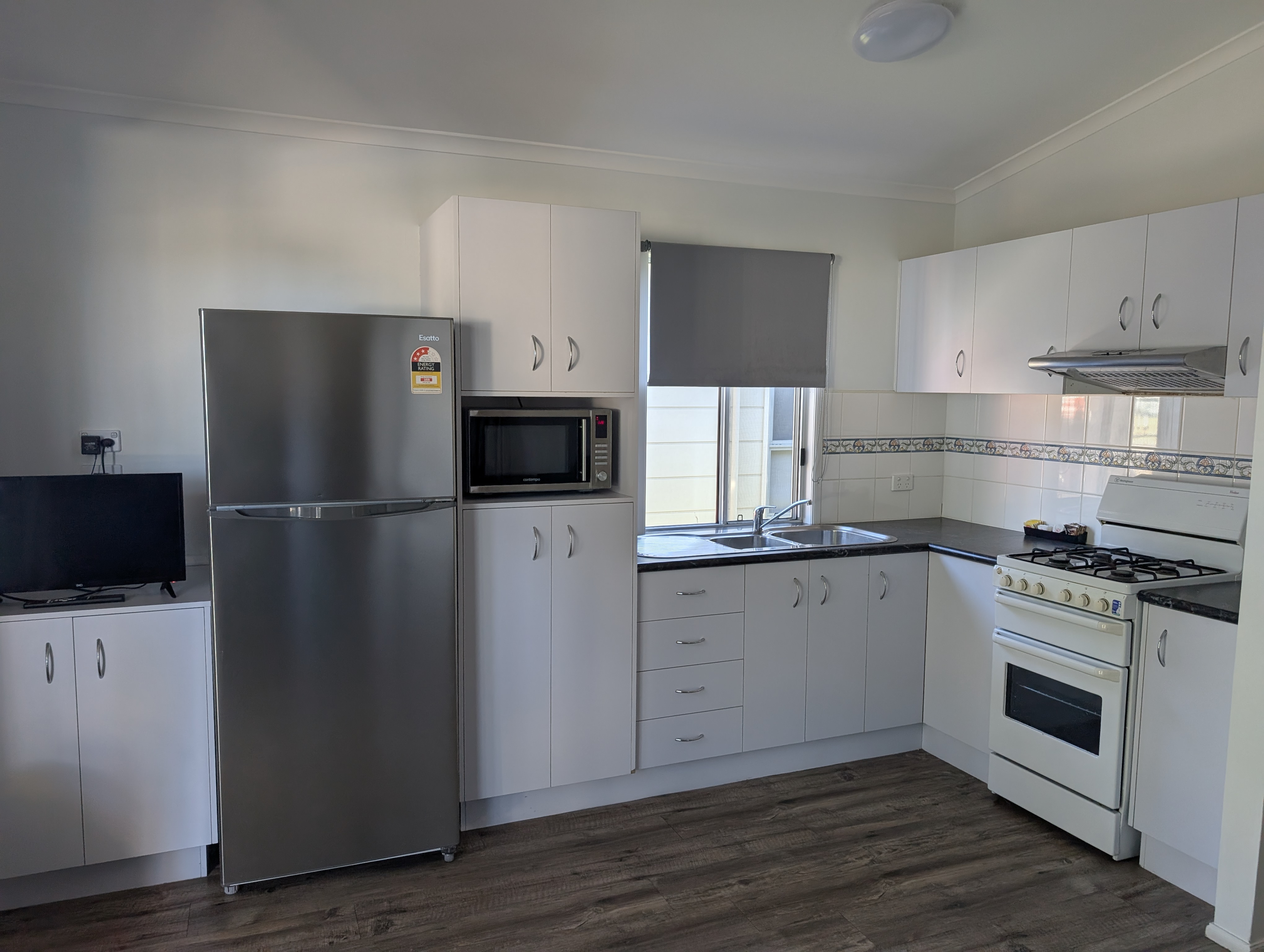 Inside you will find two bedrooms, a main bedroom with queen bed, two single beds in the second bedroom and a double foldout sofa bed in the living area. They have a bathroom with hairdryer, self contained kitchen with oven and full size fridge/freezer, dining table and lounge, flat screen TV, air conditioning and furnished deck with parking alongside.
