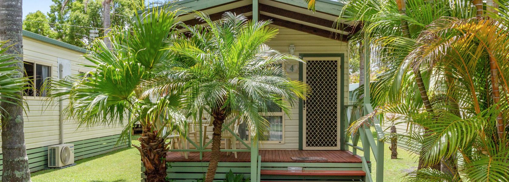 It includes a private bathroom, reverse cycle air-conditioning, ceiling fan, and a TV. The kitchenette offers electric oven and stovetop, microwave, toaster, kettle and a full size fridge for easy meals. Pets are welcome—please contact the park for approval and applicable fees.