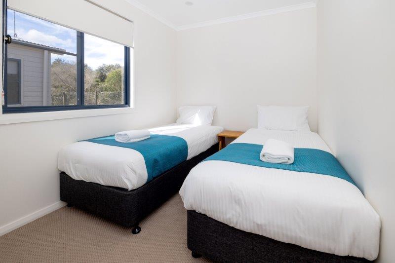 Accommodating up to four guests, it features a queen bed in the main room and two single beds in the second. The villa includes a private bathroom for added comfort and convenience. Cook with ease in the fully equipped kitchen, complete with an electric oven, stovetop, microwave, and full-size fridge. Enjoy meals in the dining area or relax in the air-conditioned living space with a TV. With cosy furnishings and modern amenities, it’s a welcoming base for your coastal getaway.