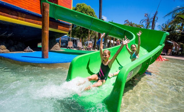 Get ready for the perfect family friendly getaway at NRMA South West Rocks Holiday Resort. Our pet friendly holiday park is located in the oceanside town of South West Rocks on the NSW Mid-North Coast, so whether you’re looking to spend your holiday relaxing by the beach, exploring lush national parks and historic attractions, or letting the kids have some fun at the Shipwreck Island Waterpark, you’ll love it here. There’s an accommodation option to suit every family. We offer state-of-the-art villas, spacious cabins, glamping style safari tents and plenty of grassy sites for setting up the caravan, camper, motorhome or tent, so there’s an accommodation option to suit every family. Whether you’re after a fun-filled family getaway or are ready for a nature-based escape, NRMA South West Rocks Holiday Resort is the ideal base for your next holiday. Adults will love meeting new friends over an afternoon barbecue or trying out a new water sport with SUP and kayak equipment hire. But it’s the huge range of purpose-built kid friendly facilities that will really keep the whole family happy, including Shipwreck Island Waterpark, swimming pool, mini golf course, pedal go-kart hire, kids club, bouncing pillow, playground, and more. You can even bring along your four-legged family member during low and mid-seasons, with selected pet friendly cabins and sites.
