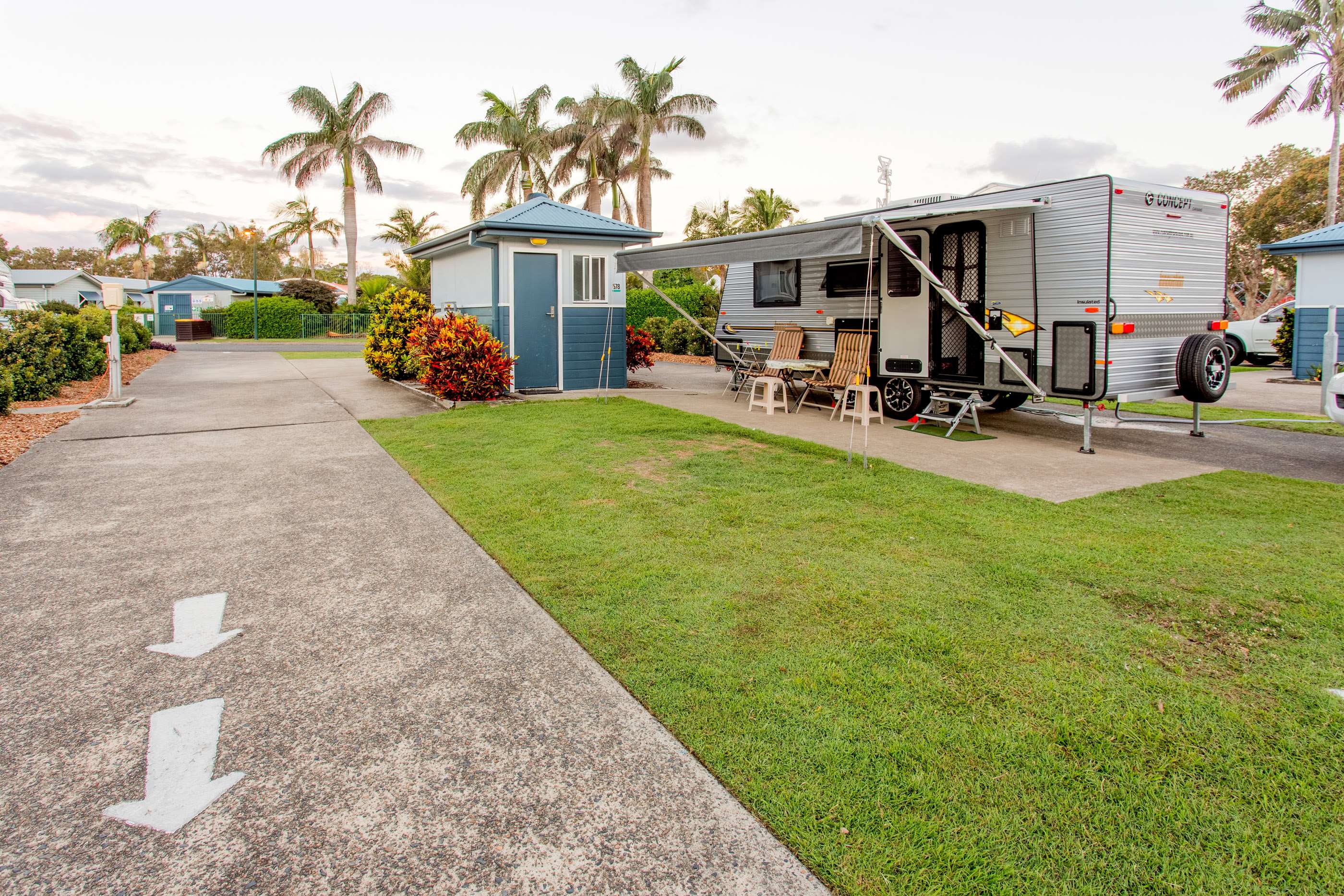 Ensuite Drive through camping sites are long 19 metre angled cement slab sites which have been designed with great access.
