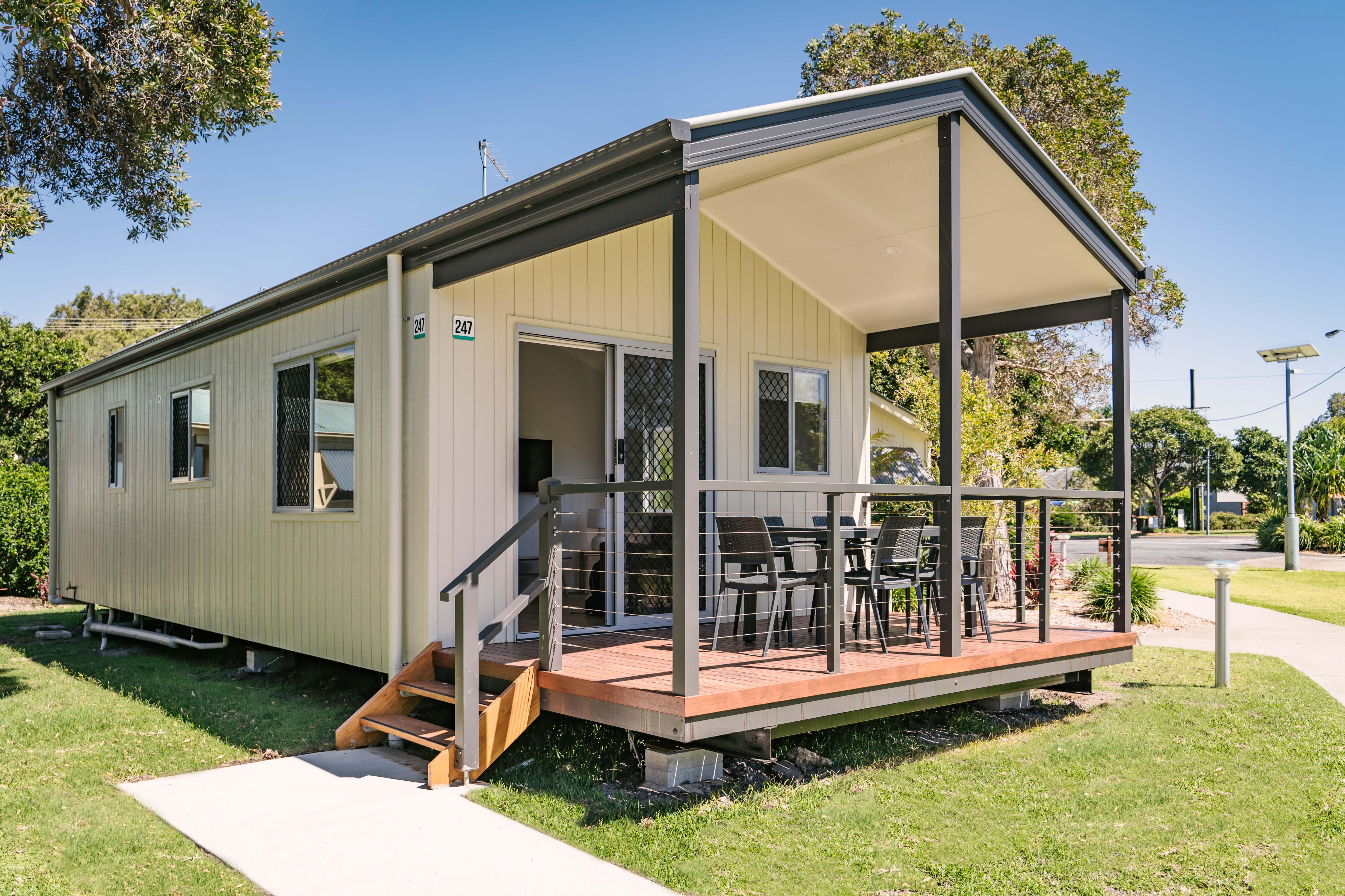 Located close to all park facilities including BBQs, jumping pillow, playground, resort pool, camp kitchen and The Hub.
