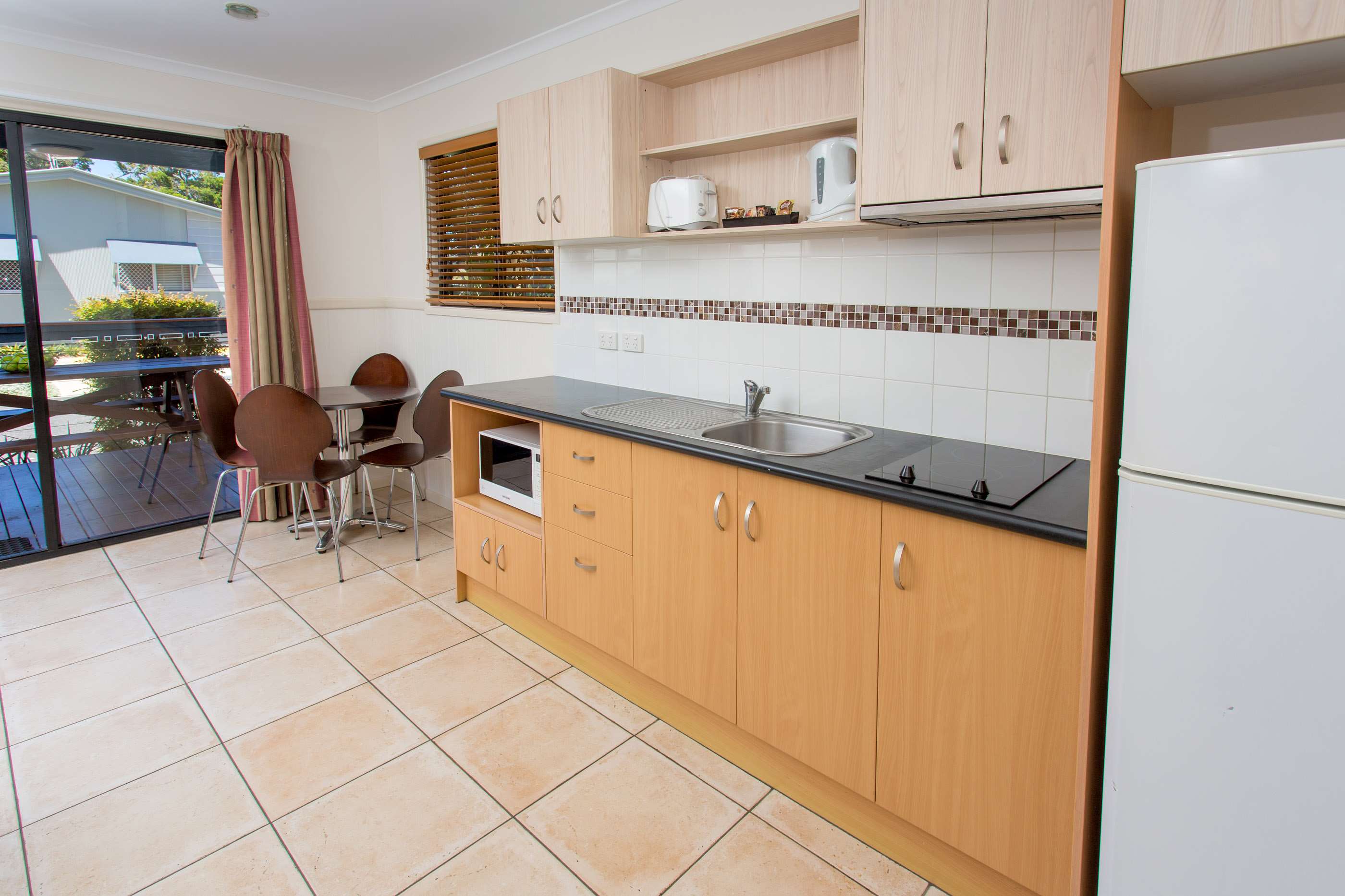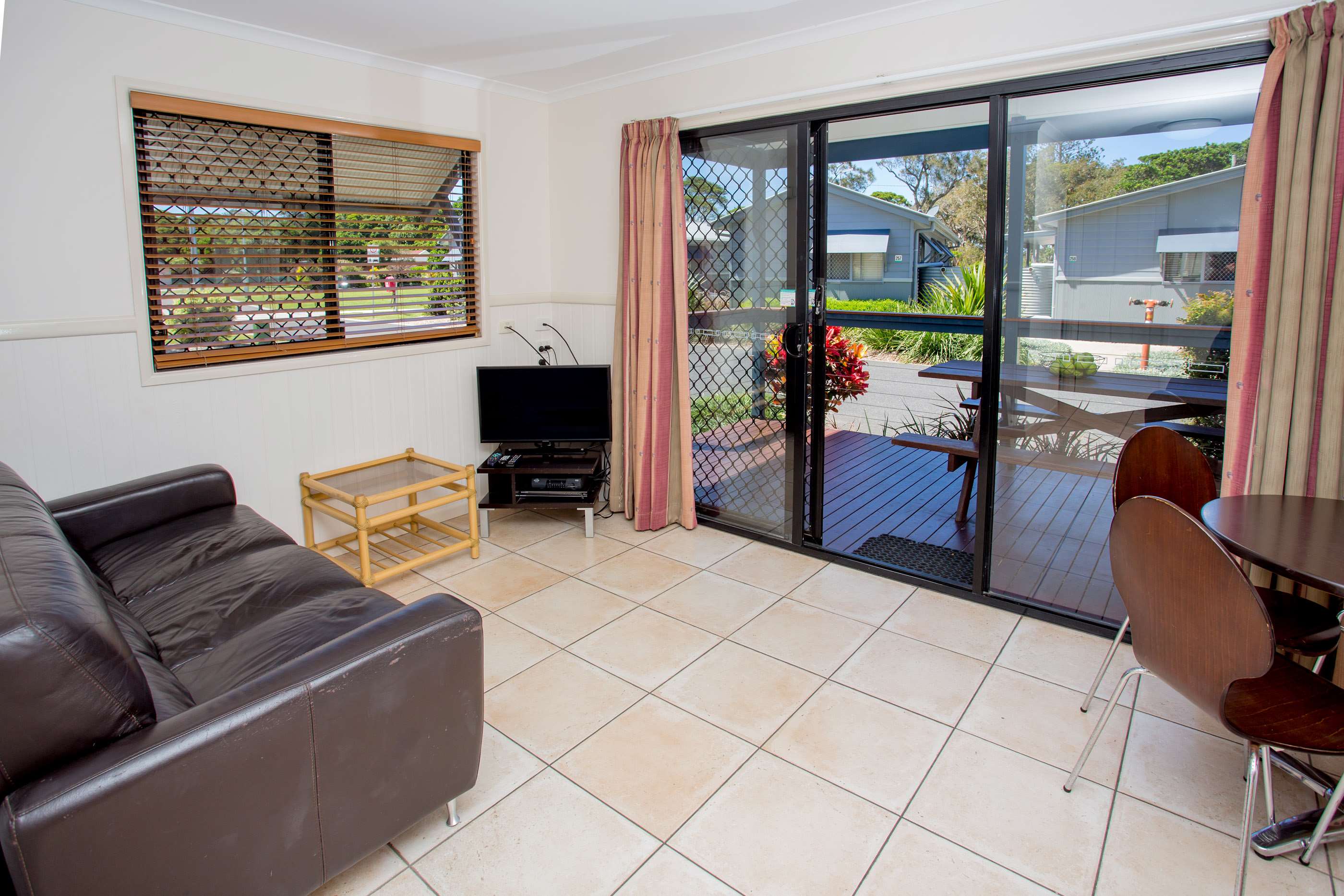 Hibiscus Villas are conveniently located throughout the park with several adjacent to the pool, BBQs, camp kitchen and park facilities. There is a separate living space with a fully fitted kitchen, dining area and air conditioning. The lounge area includes TV. The main bedroom has a queen bed and the second bedroom is fitted with a triple bunk bed (all linen is supplied). The bathroom has a shower, vanity, and toilet.