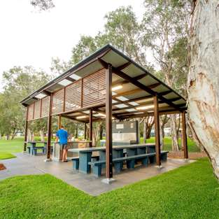 Experience the patrolled beach and stunning coastal creek opposite the park, the famous Jetty area, and spot some whales while enjoying the breathtaking views of Muttonbird Island.
