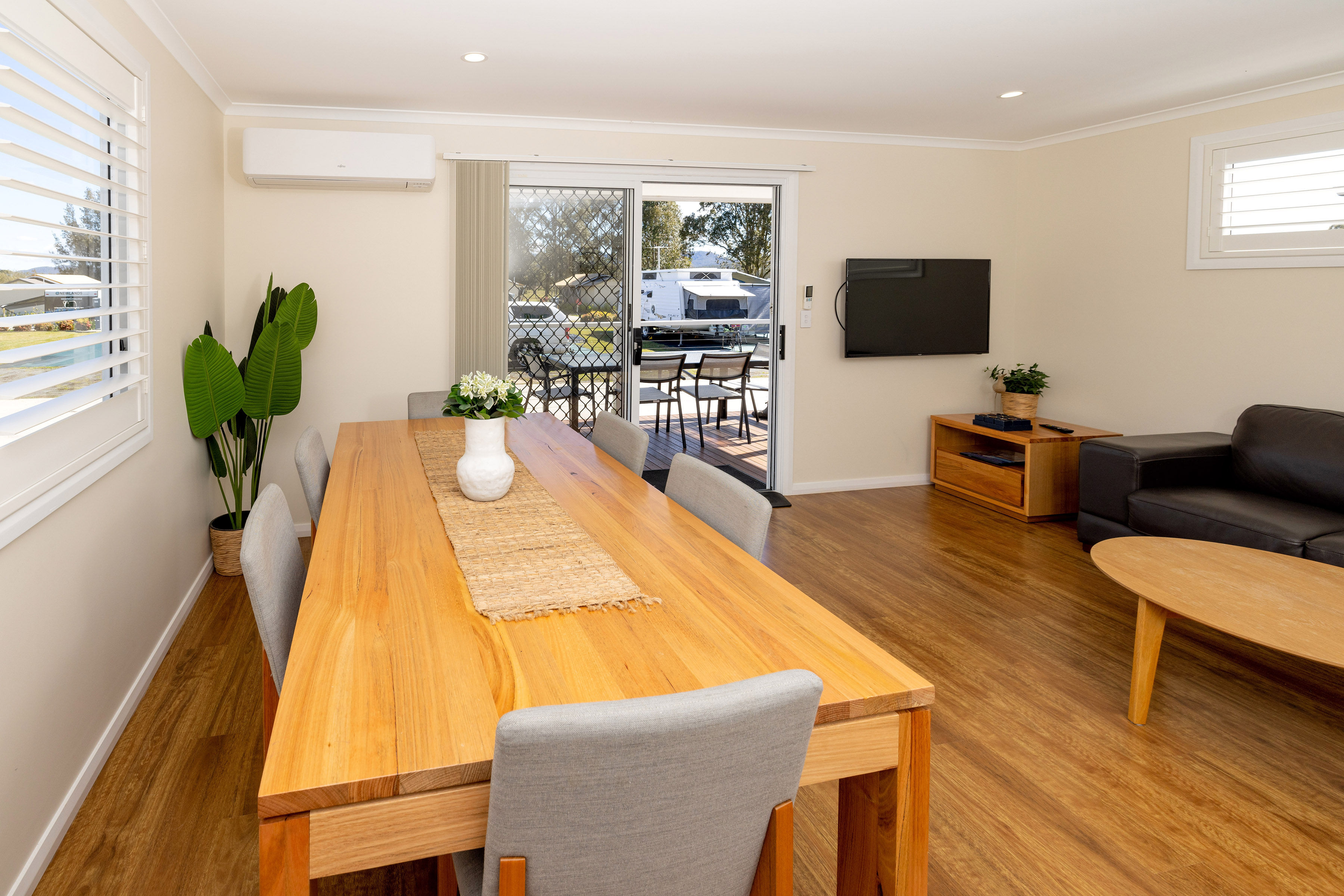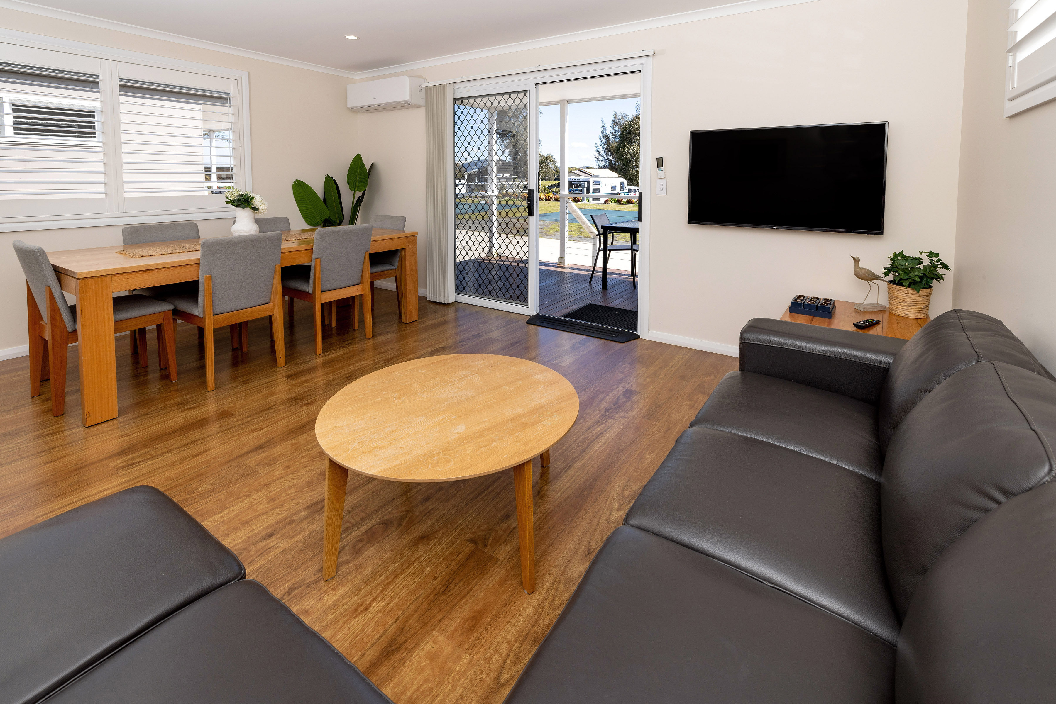 - Open plan, spacious living area with lounge and dining area, air conditioning and TV