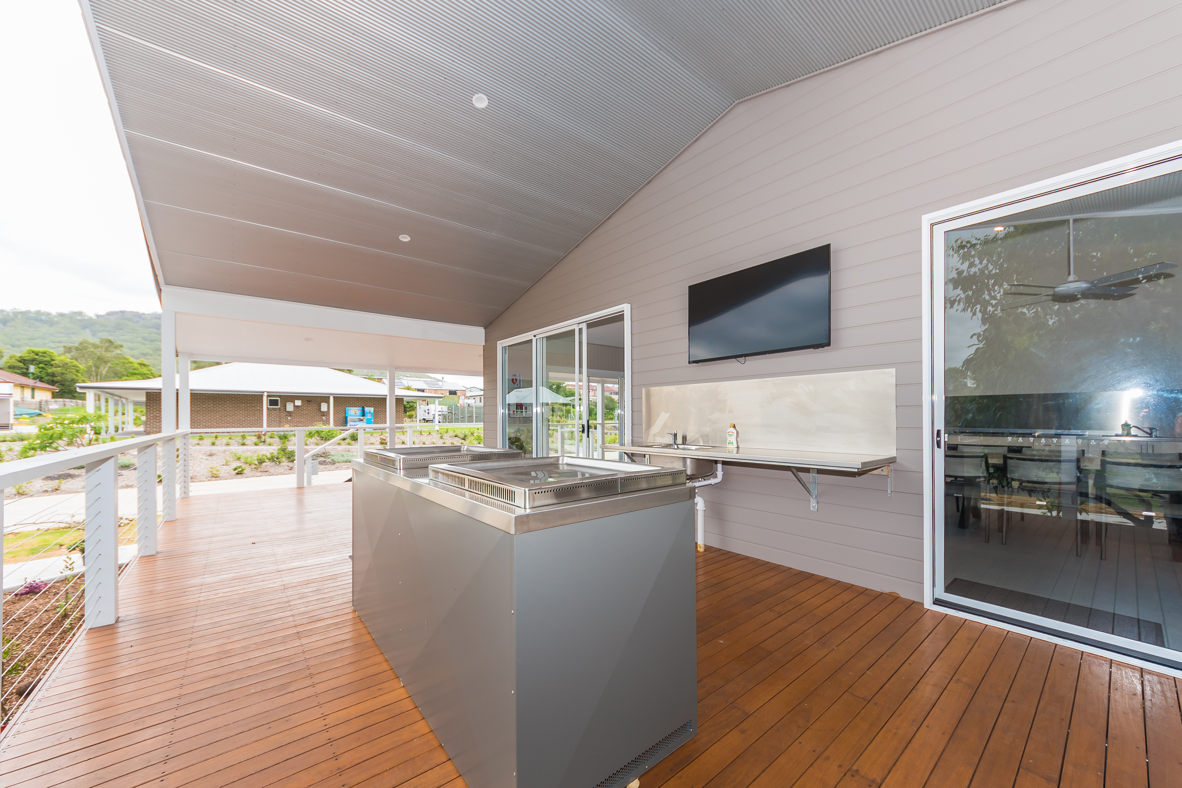Our camp kitchen is available for use between the hours of 7am and 9pm. Please limit your cooking time to no longer than 1 hour so all our guests have access to the kitchen. The camp kitchen is not available for exclusive use. There are gas BBQs, gas cooktops, two ovens, sinks, microwaves, toasters, and kettles for your use. A refrigerator and freezer are provided for your convenience where food must be labelled and dated with your site number on it. There are tables and chairs inside and outside for your use. Pets are not permitted at the camp kitchen. Service Dogs are an exception. This area is under 24 hour CCTV surveillance.