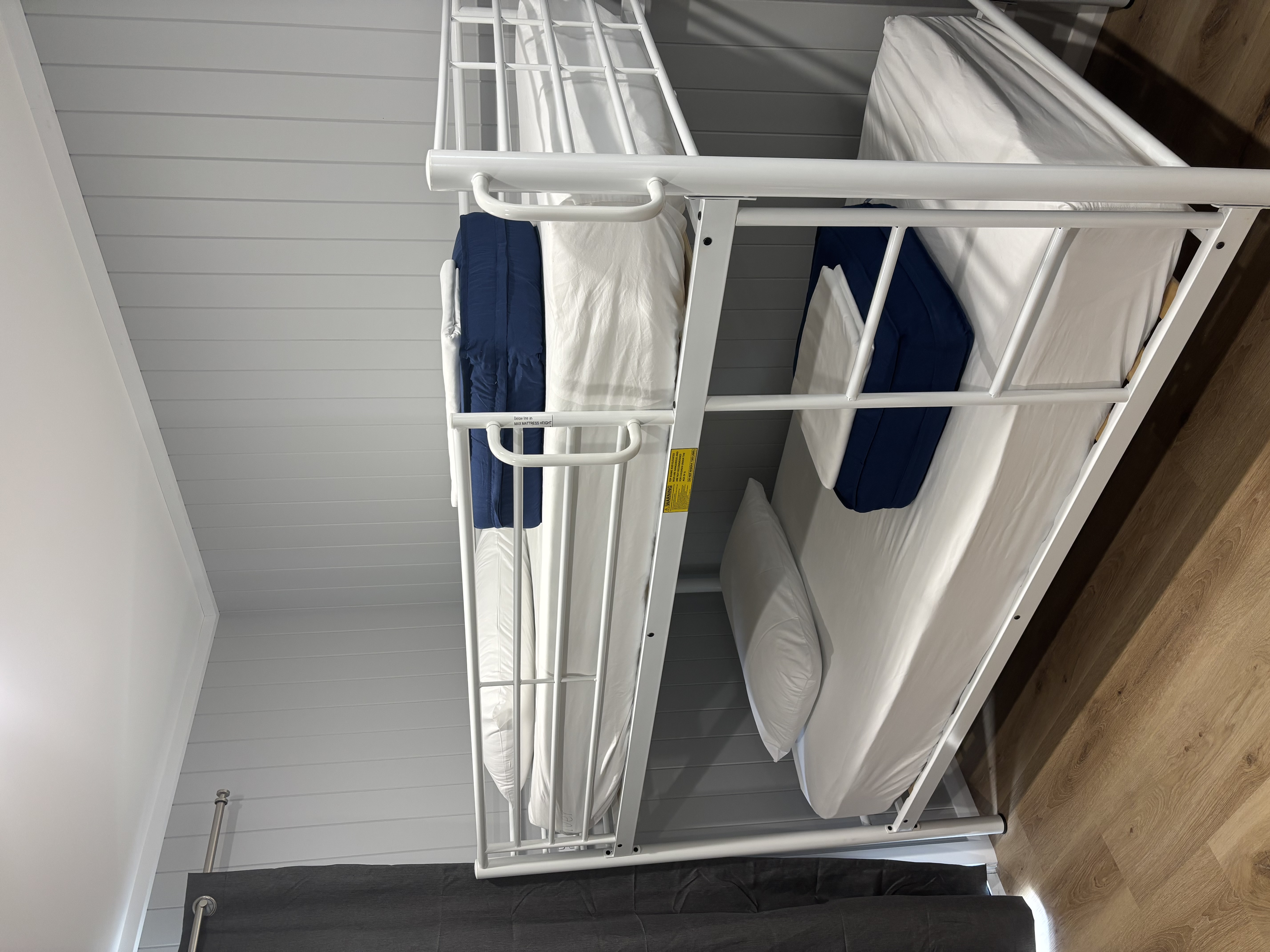 Bunk beds - please be advised: Work Law Health and Safety state that operators must comply with the Australian Standard AS/NZS 4220:2003 Children under the age of 9 years are not permitted to use the top bunk, children must not play on the top bunk. The bunk beds are suitable for children aged up to 12 years of age only. Please take this into consideration when making your booking.