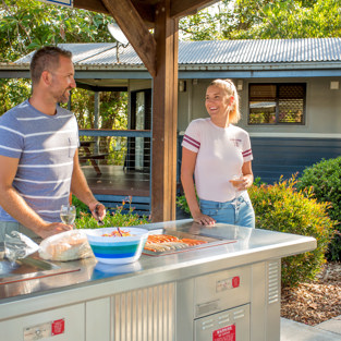 Our new camp kitchen is a crowd-pleaser with modern cook tops, microwaves, kettles, toasters, fridges and oven. Plus an attractive recreation area with indoor and outdoor seating, TV, USB connection points and lounges. Other facilities include a convenience store, modern BBQs, playground, BMX track, unlimited entry to swimming pool and tennis court, laundry facilities and bathroom amenities buildings, including one recently refurbished. Enjoy super-fast Wi-Fi across the entire park – new and free!