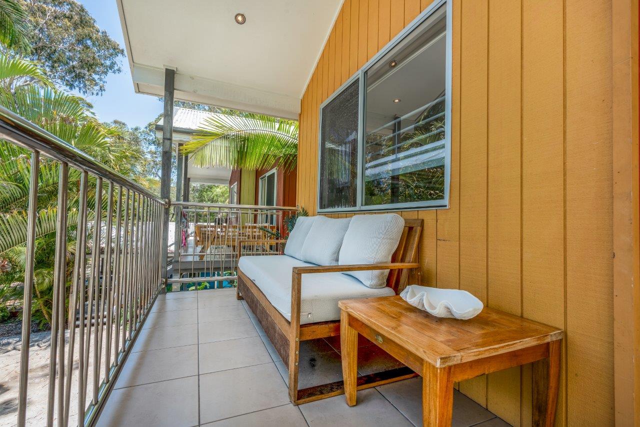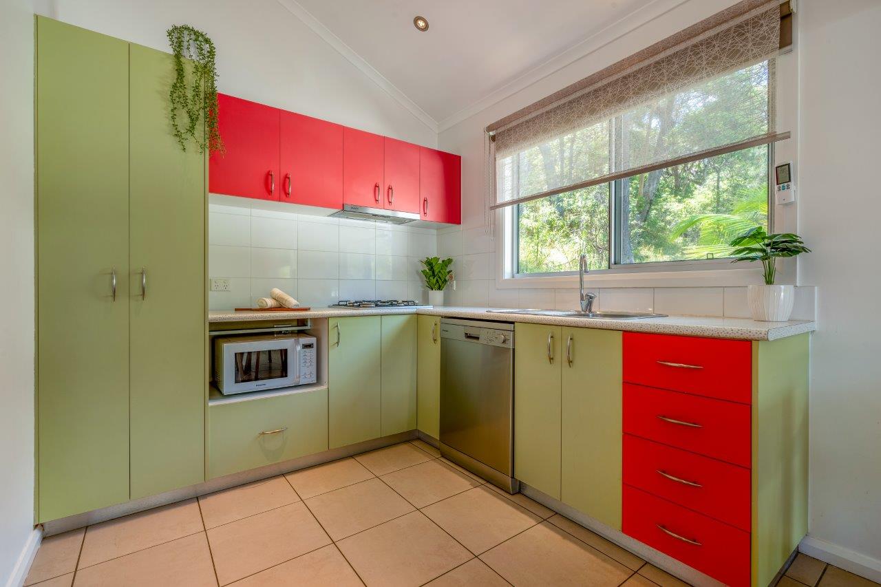 Comfortable, contemporary elevated cabins that will catch the breeze and your imagination. 2 bedroom - main with queen bed and second has 2 sets of bunks. Sleeps 6 (maximum). All linen provided. TVs in the living area and master bedroom. Roomy kitchen with stove, microwave and fridge. Air conditioned with lounge, dining bench and deck. Large undercover parking area for 2 vehicles and large enough for boat or 4WD.
