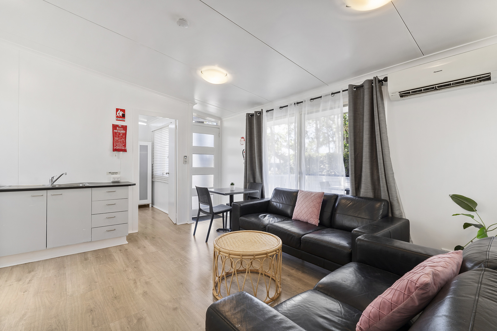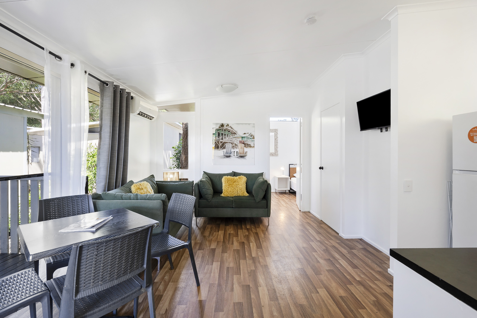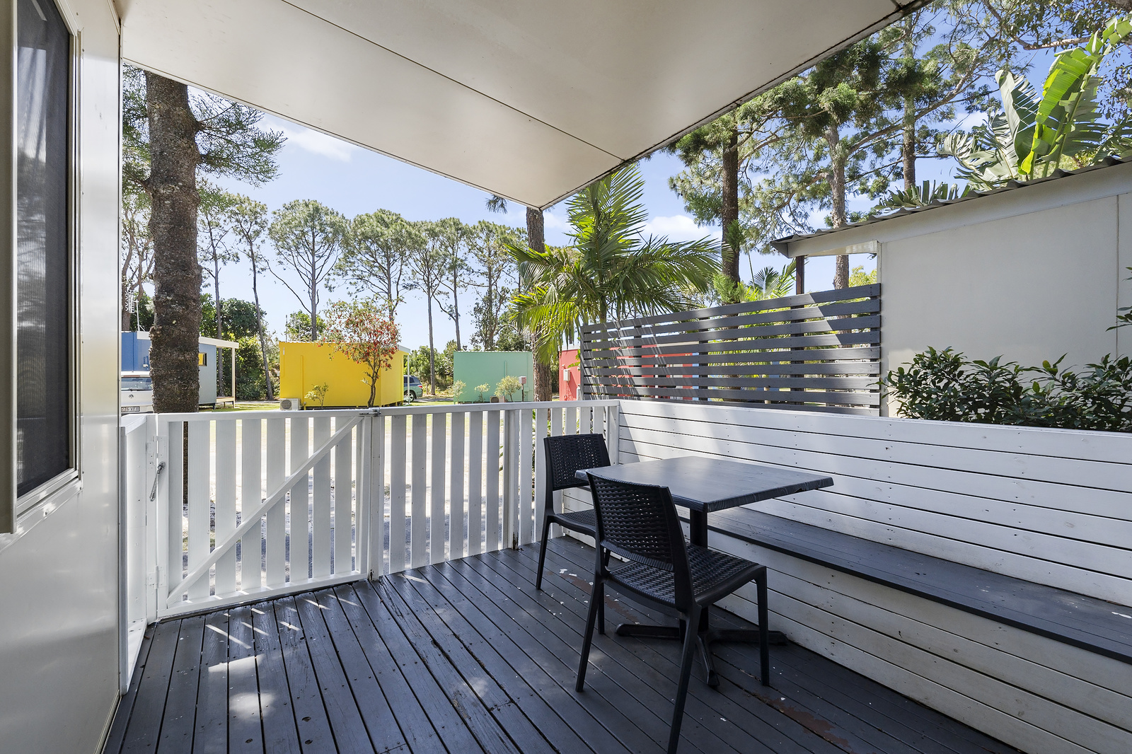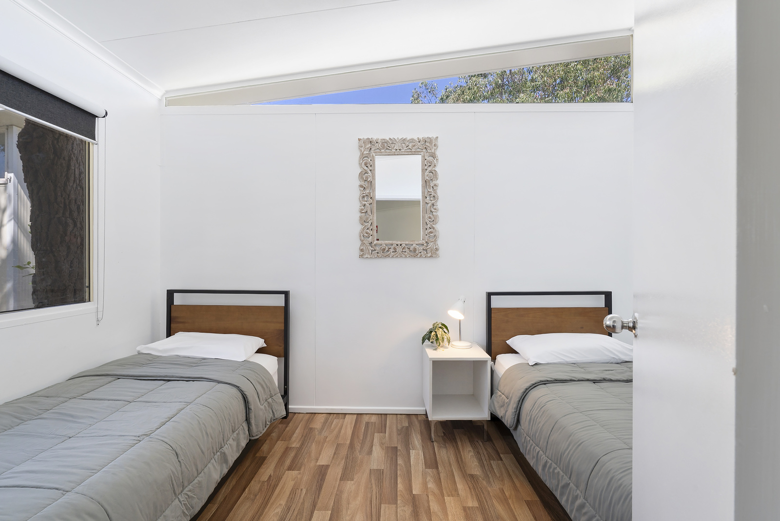 Enjoy modern comfort with added privacy. Our 2 Bedroom Standard Villas sleep up to four guests with a queen bed in the main bedroom and two single beds in the second bedroom, as well as a bathroom, living area, kitchenette, and private deck.