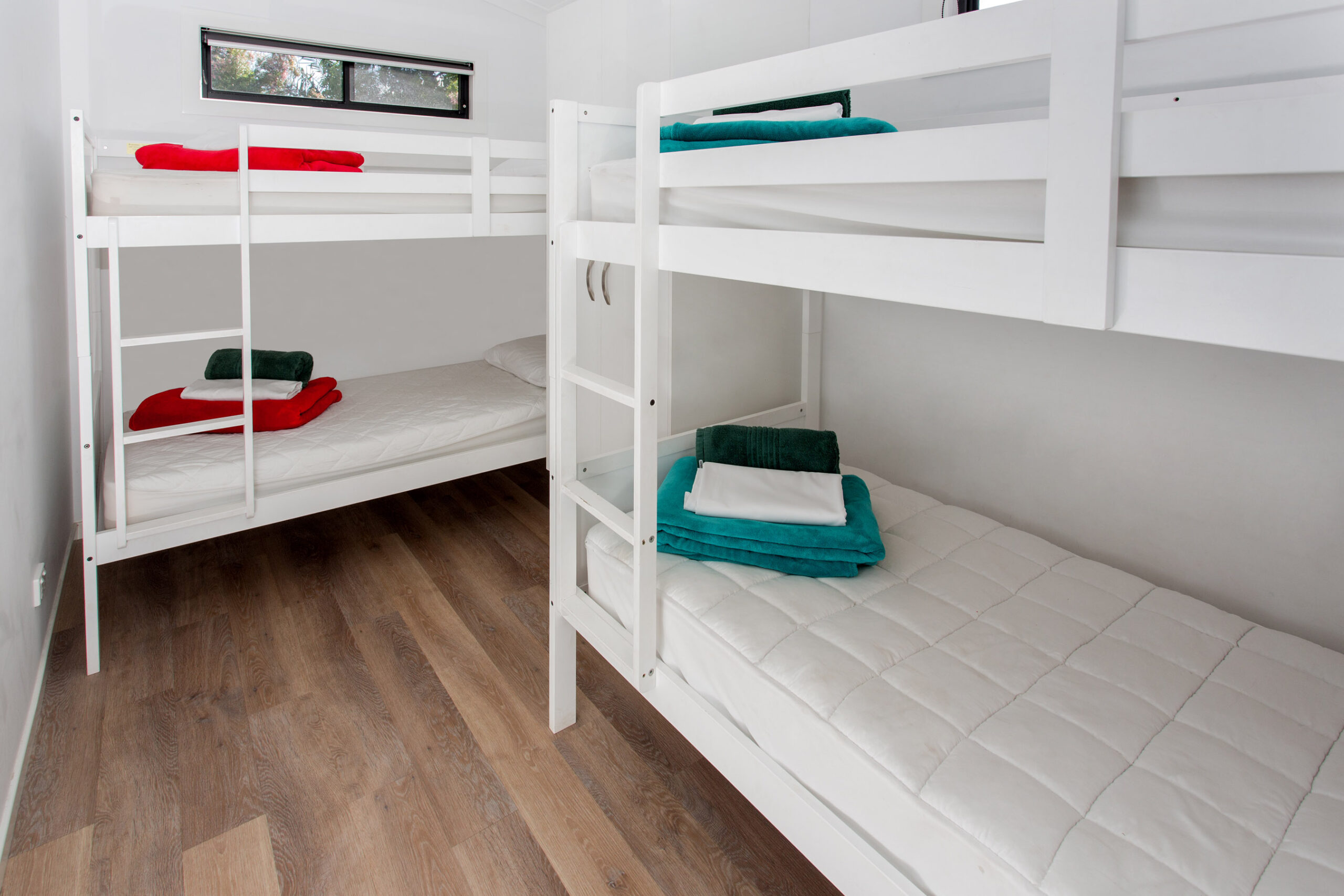 - 2 x single bunks across a second and third sleeping space (sleeps 4 kids!)