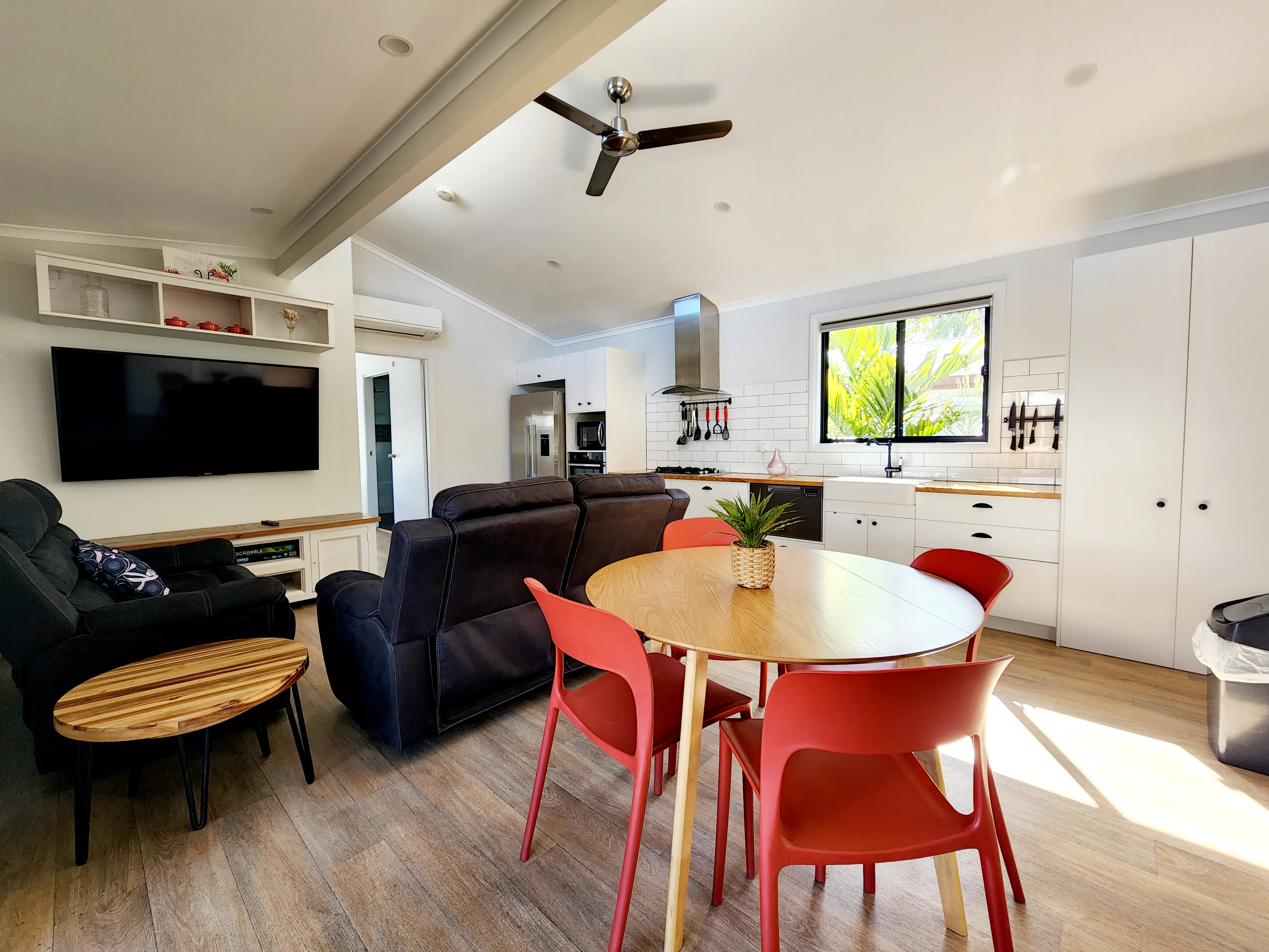 • 1 x single bed with trundle (based on assigned cabin) - Open plan kitchen, living & dining with stylish coastal farmhouse interiors