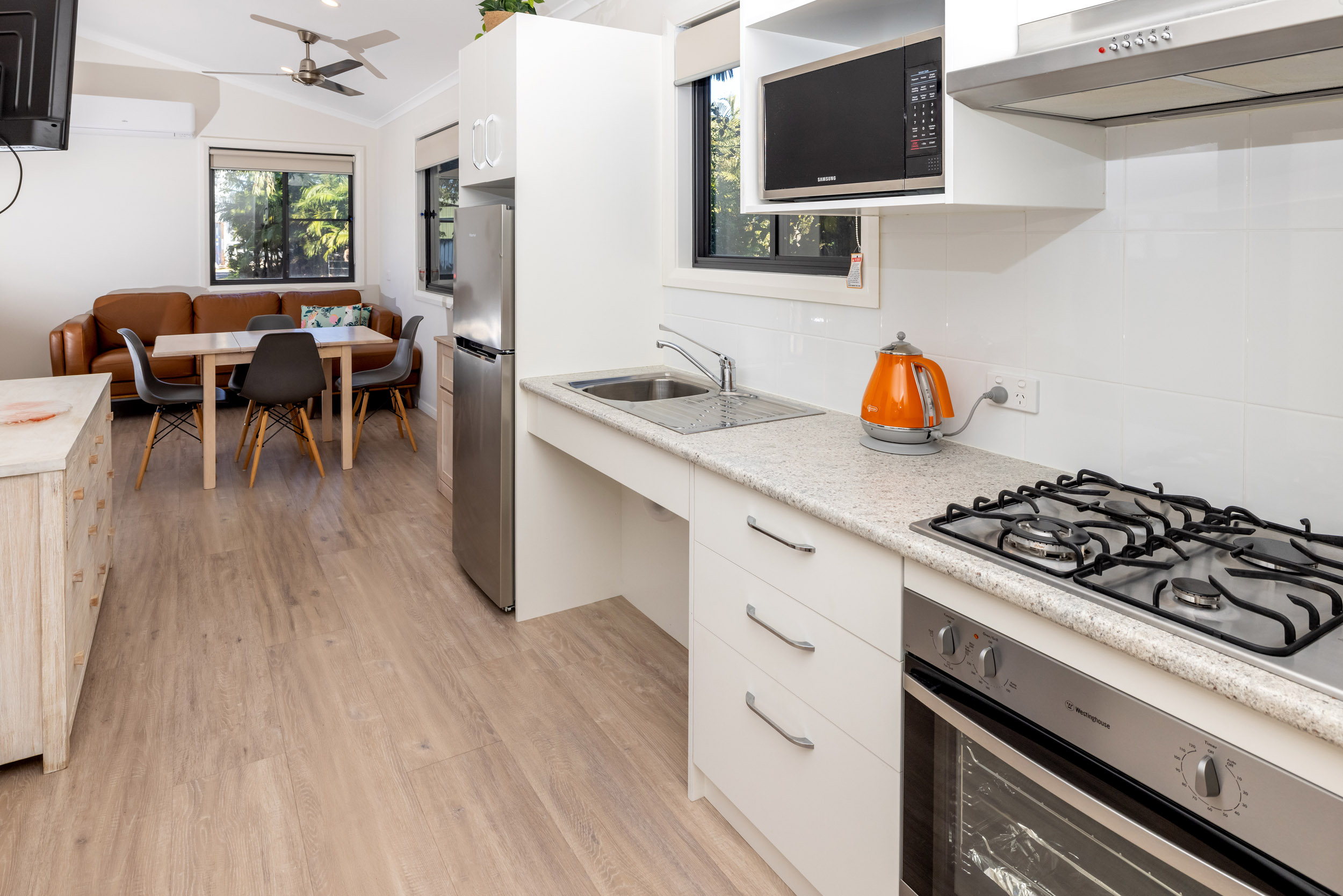 Enjoy views of the Splash Park and Wooli Wedgie waterslide from your deck, plus everything you need for a relaxed stay.