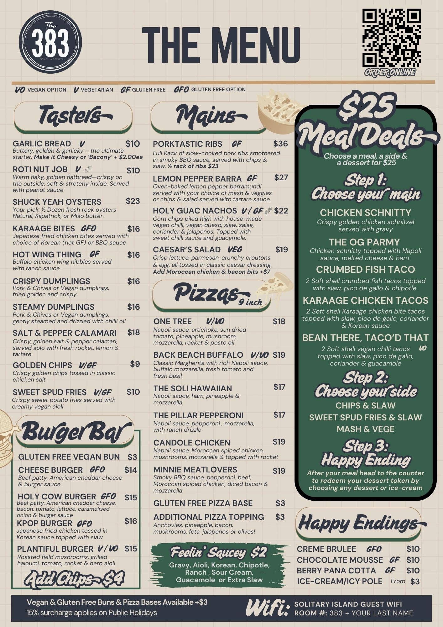 Swing by The 383 Corner – our takeaway coffee window serving up barista-made brews from 7:30am to 10:30am, Thursday to Sunday. Grab a pastry, get your caffeine fix, and start your day right.