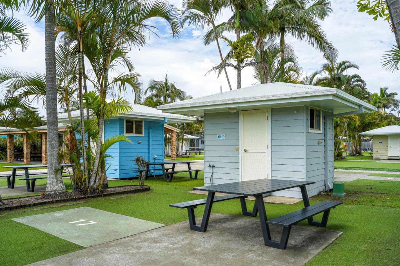 Ensuite is complete with a shower, toilet and vanity. The fully landscaped sites offer a concrete slab, moveable picnic table, access to Foxtel and parking for one vehicle per site. Suitable for tents.