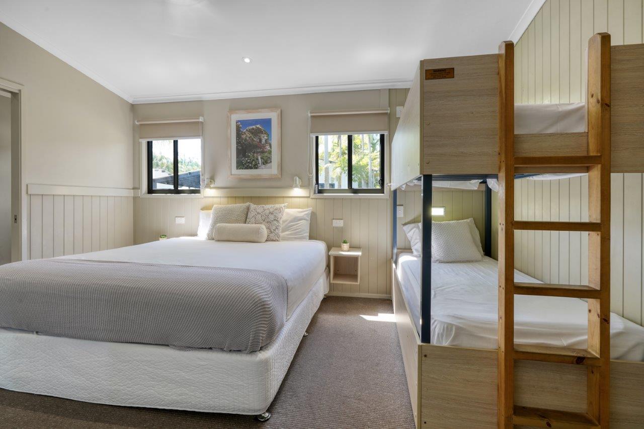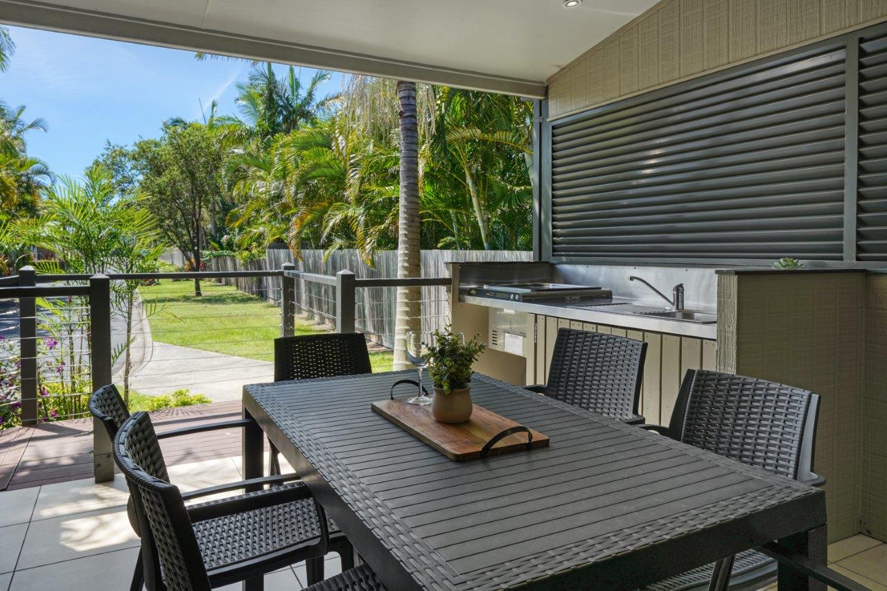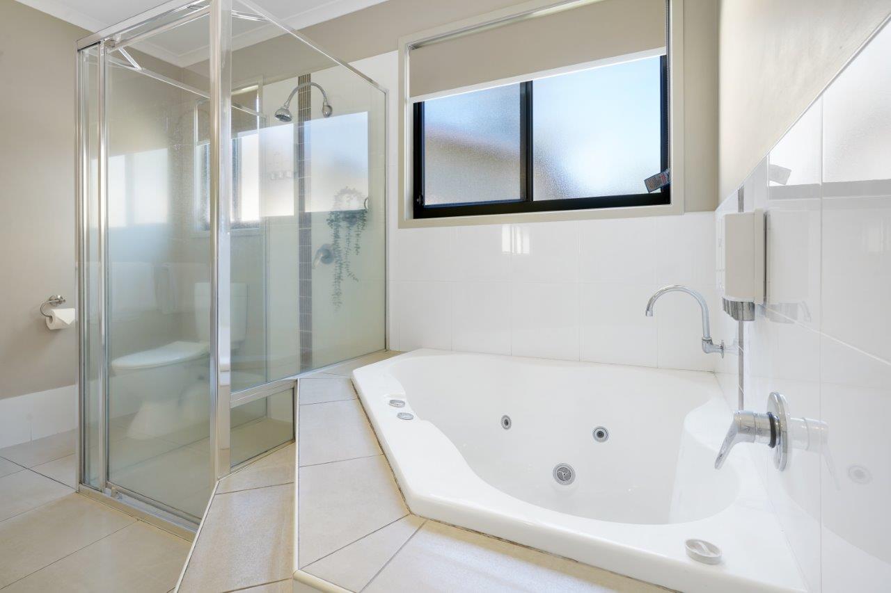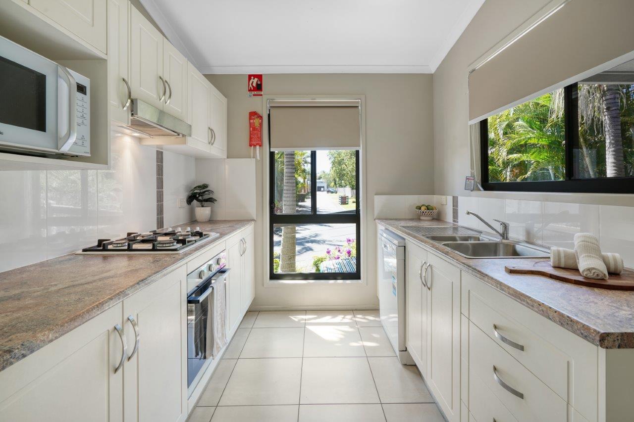 The Luxury Villas's have two double bedrooms with a king in the main, queen and single bunks in the second bedroom. The villa has two bathrooms, one with a spa bath. The villa has a washing machine and dryer, fully equipped kitchen with a dishwasher, two TVs and is air-conditioned. There is a patio with a BBQ.