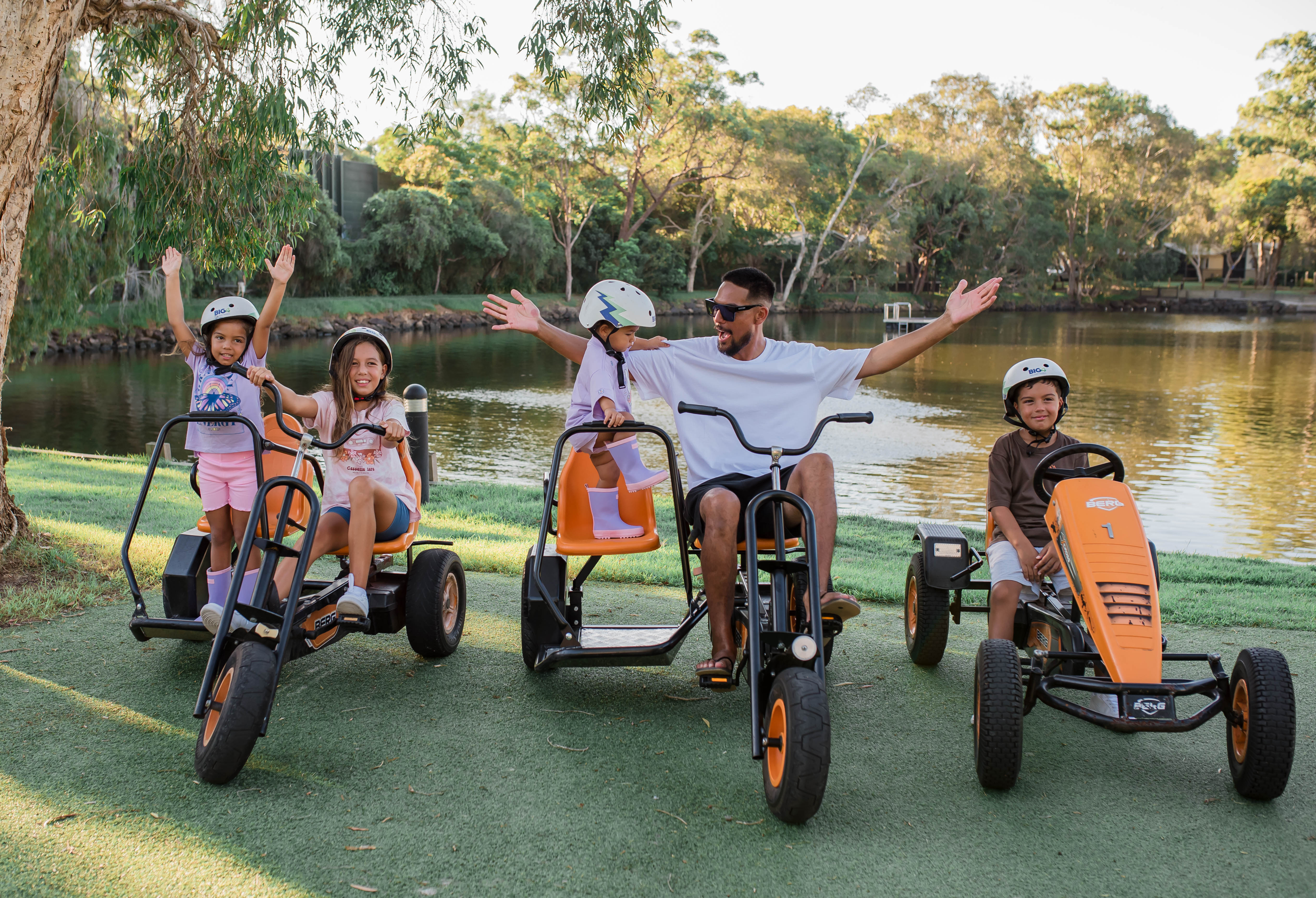 Dive into family fun at BIG4 Tweed Billabong Holiday Park, nestled in Tweed Heads, NSW. Just minutes from the QLD border and a short drive to the Gold Coast, this award-winning park is a family paradise. Home to an epic waterpark with four slides and a tipping bucket, a private saltwater billabong offering kayaking, fishing, and paddleboarding adventures, resort-style pools, Go-Karts, pickleball court and playgrounds, there’s endless excitement for all ages. Whether you’re camping or staying in a cabin, the ultimate family getaway awaits at BIG4 Tweed Billabong!