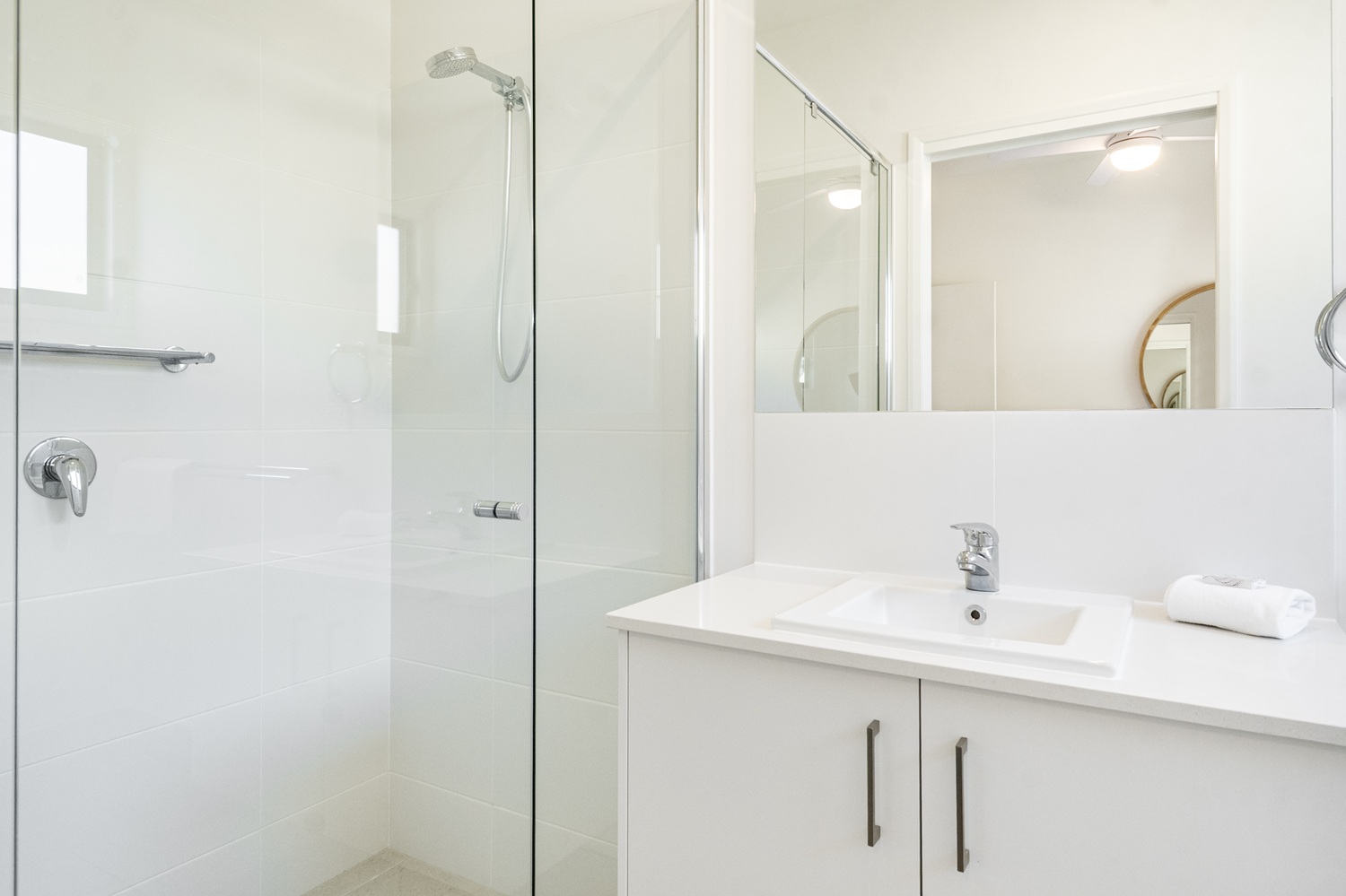 - A DDA compliant Bathroom with shower and vanity, toilet.