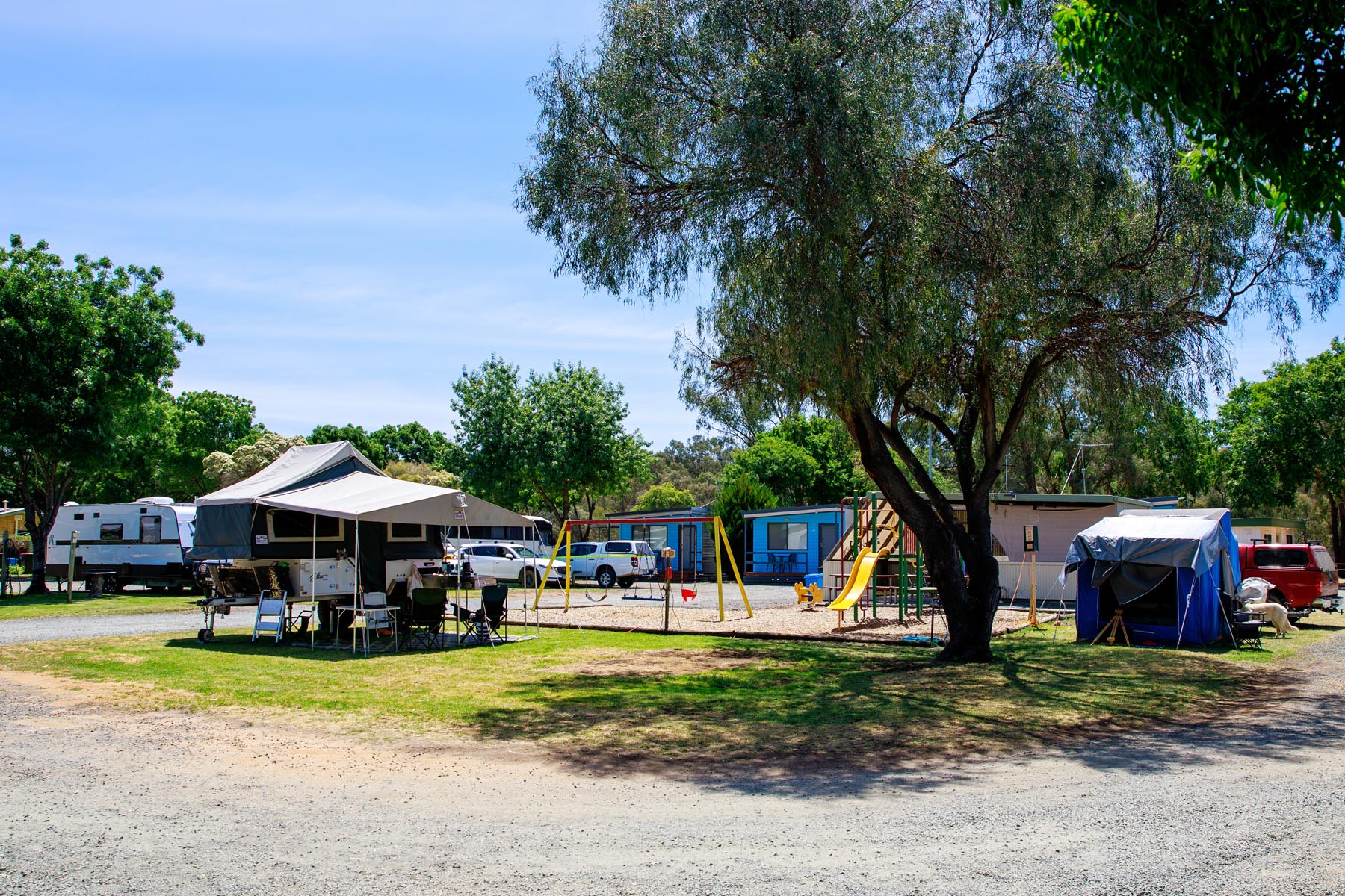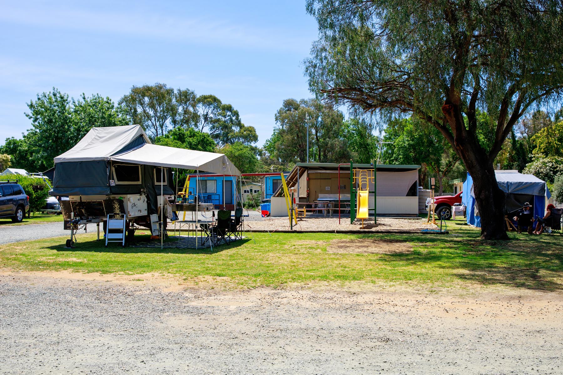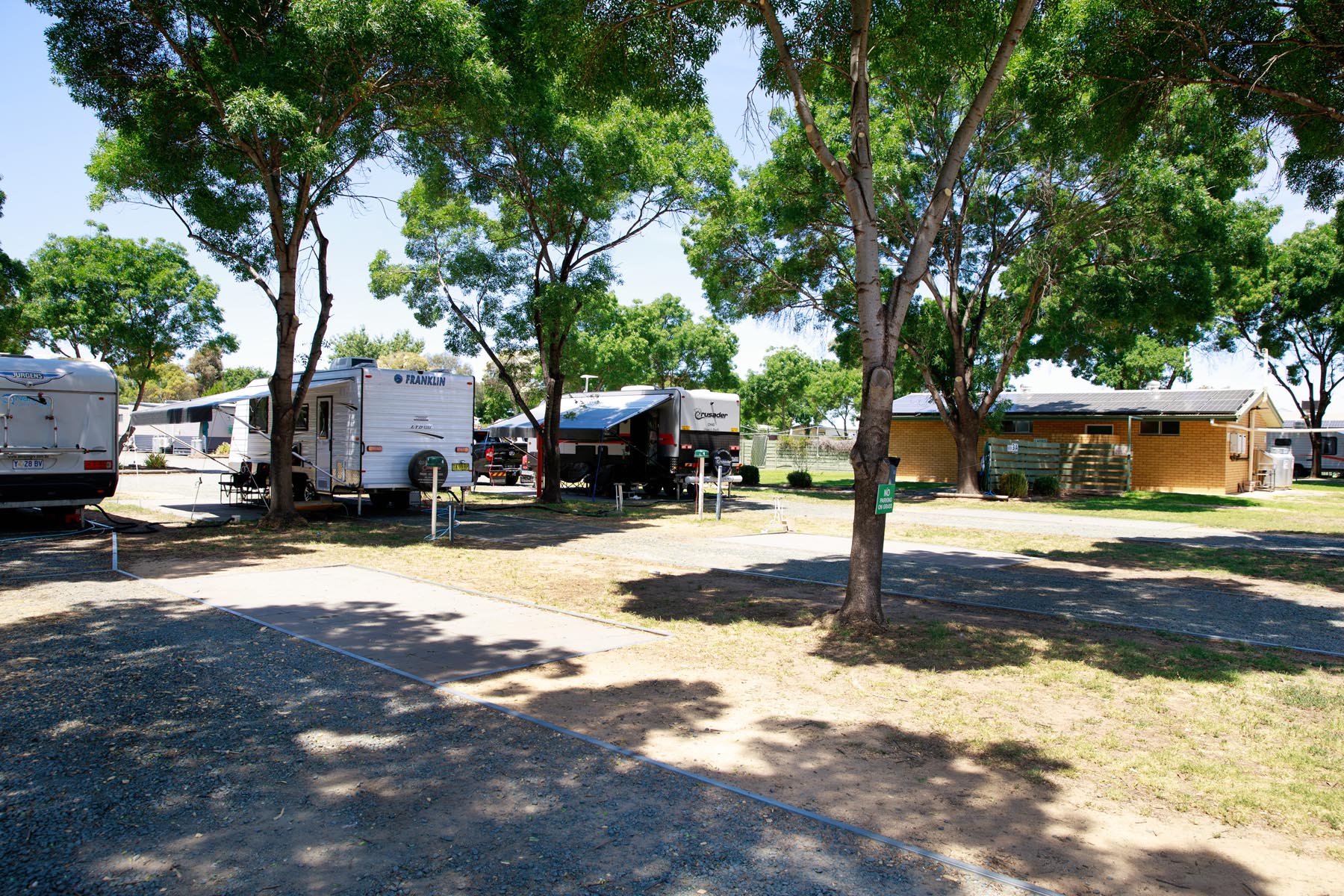 All sites are powered and just a short stroll from the amenities, pool, camp kitchen, and recreation room. Most sites also feature paved slabs for easy access to your caravan.