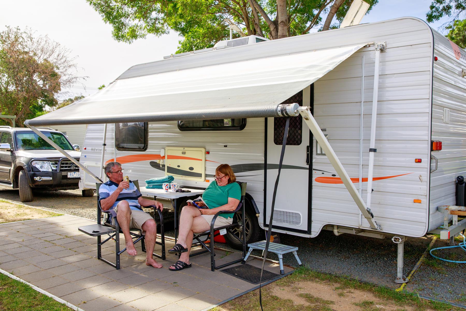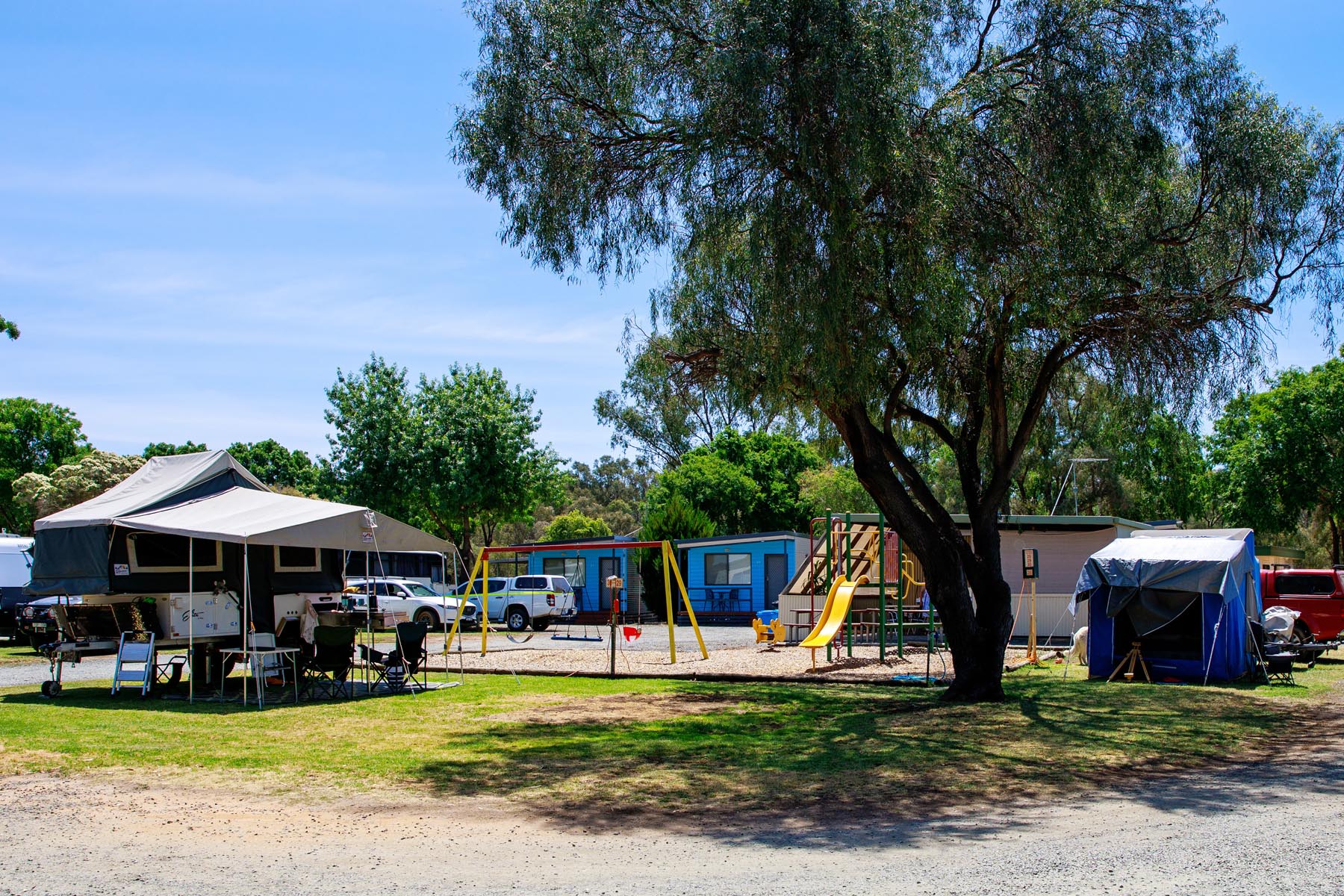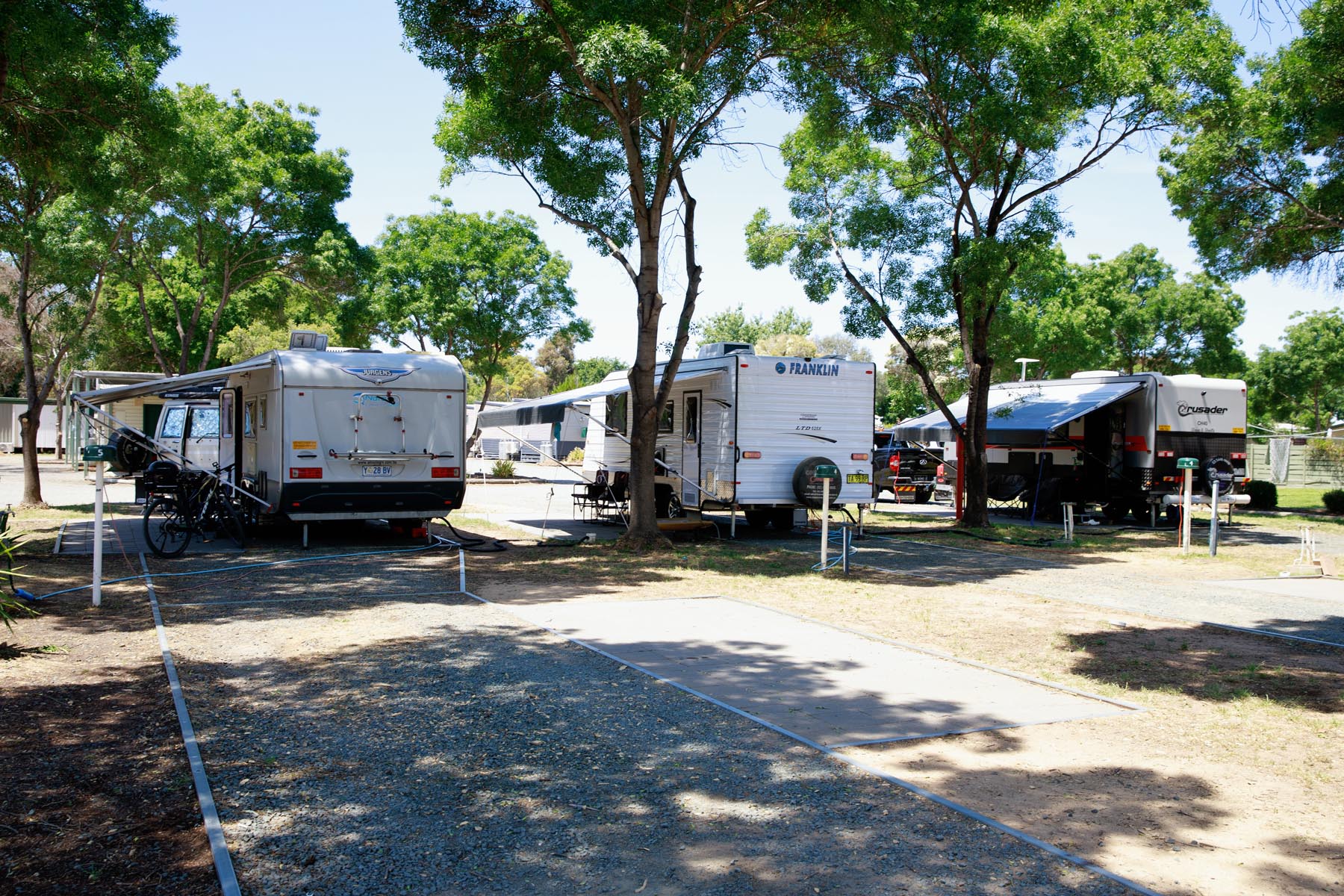 All sites are powered and just a short stroll from the amenities, pool, camp kitchen, and recreation room. Most sites also feature paved slabs for easy access to your caravan.