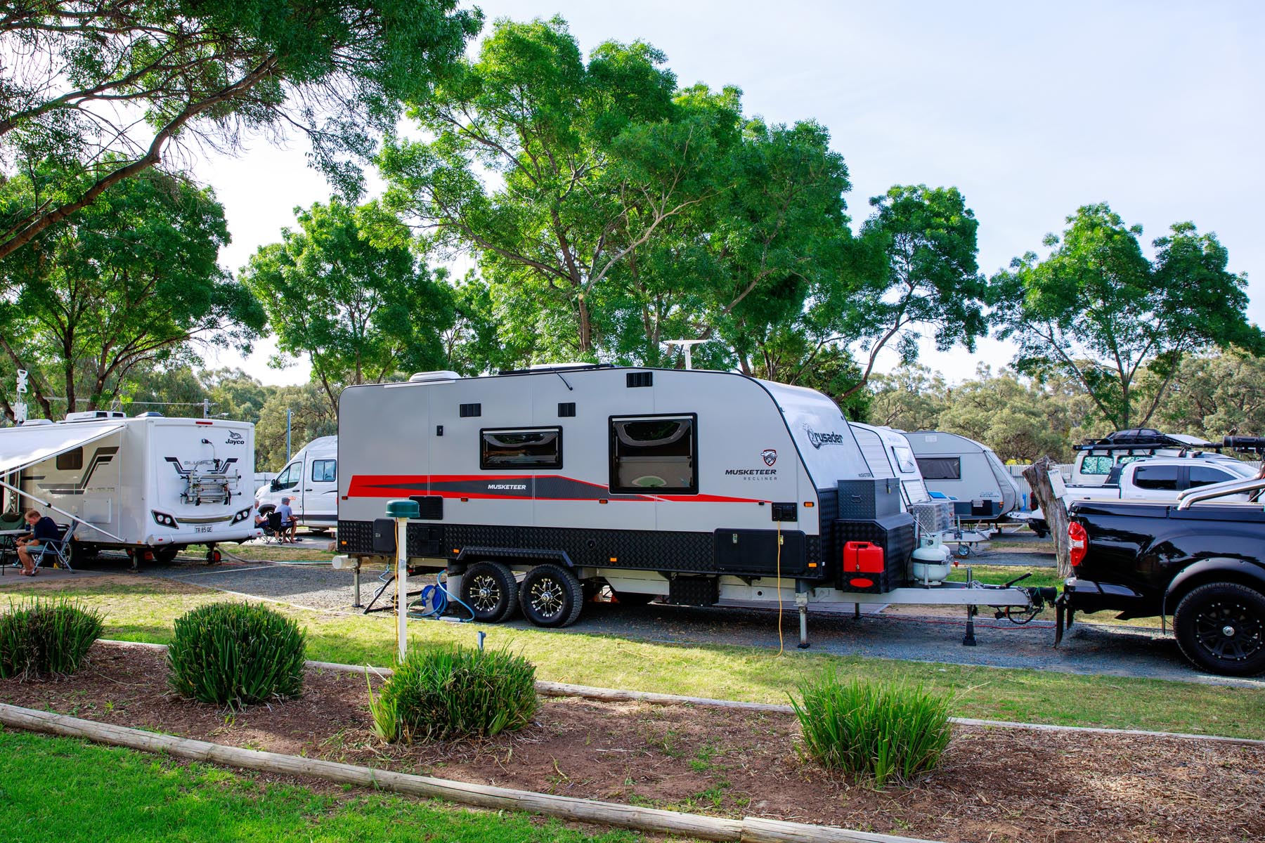 Choose from our range of Powered Sites, including grassy, shady spots near the Amenities Block and drive-through gravel sites perfect for big rigs.