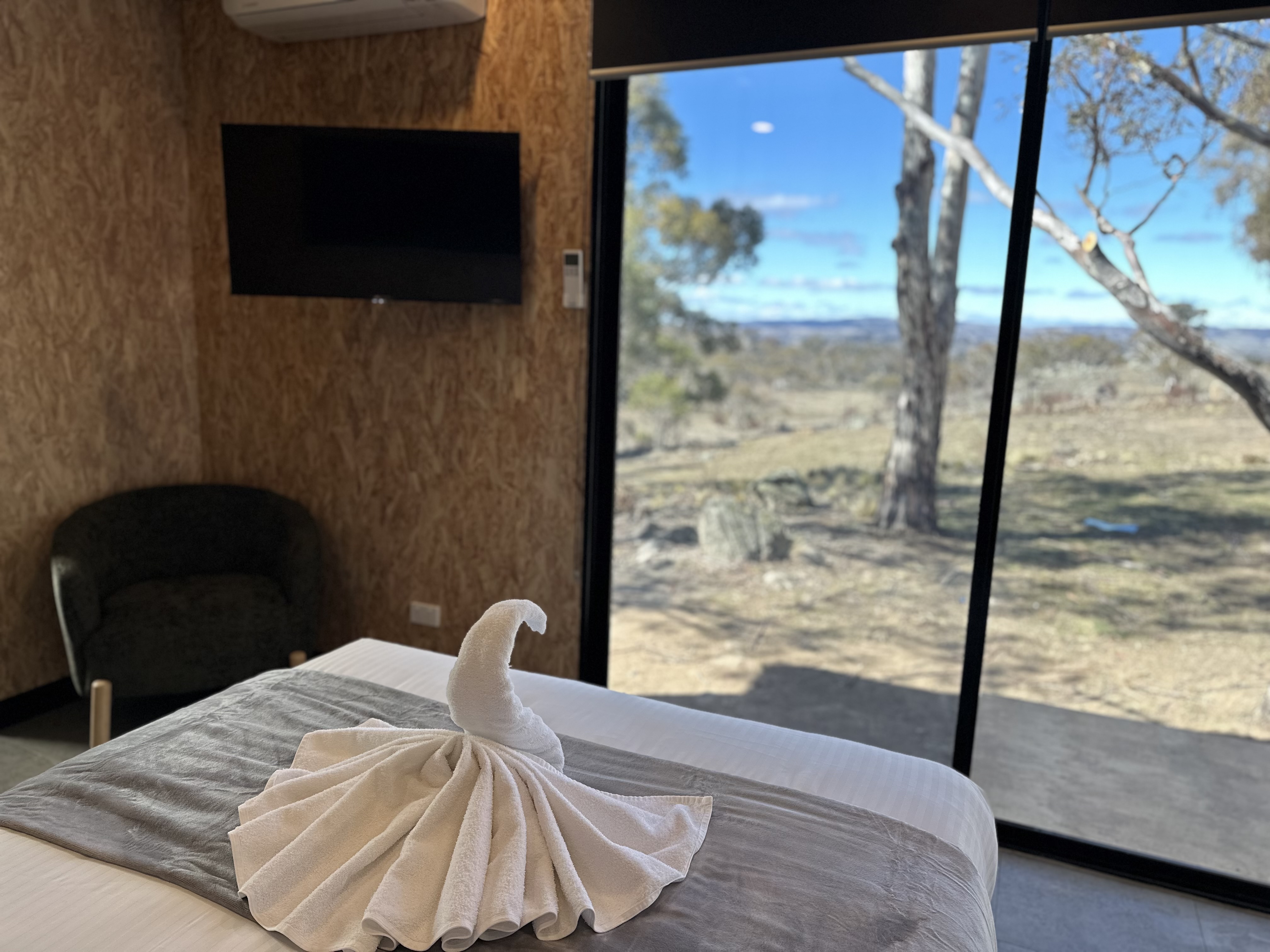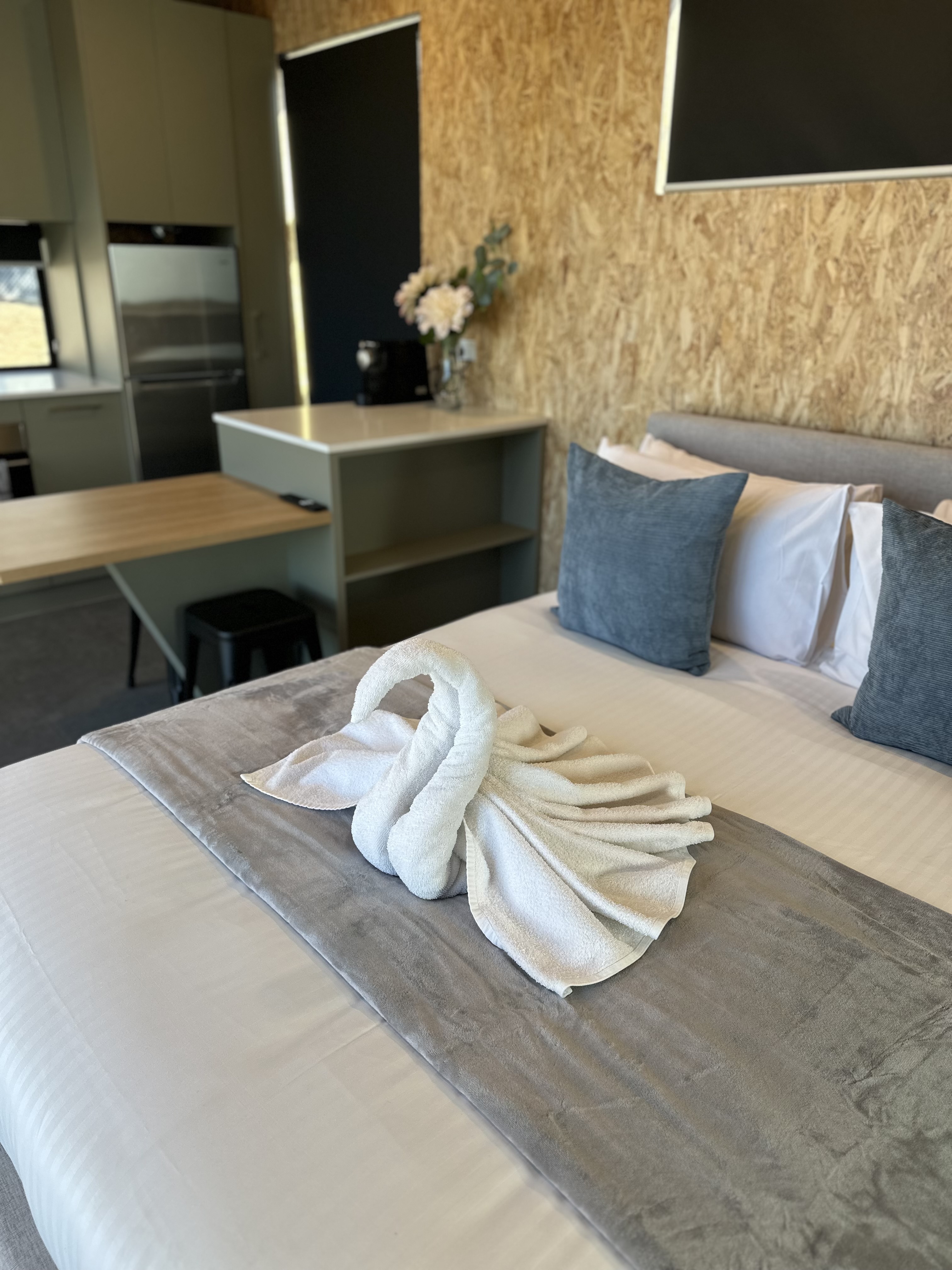 The Mountain View Cabin is a modern and intimate retreat—perfect for couples seeking comfort and convenience in a peaceful setting. Thoughtfully designed with stylish décor and practical amenities, this cosy cabin features a plush queen bed, a fully equipped kitchenette with oven, gas stove, and microwave, ensuite, plus the convenience of a washer/dryer combo.
