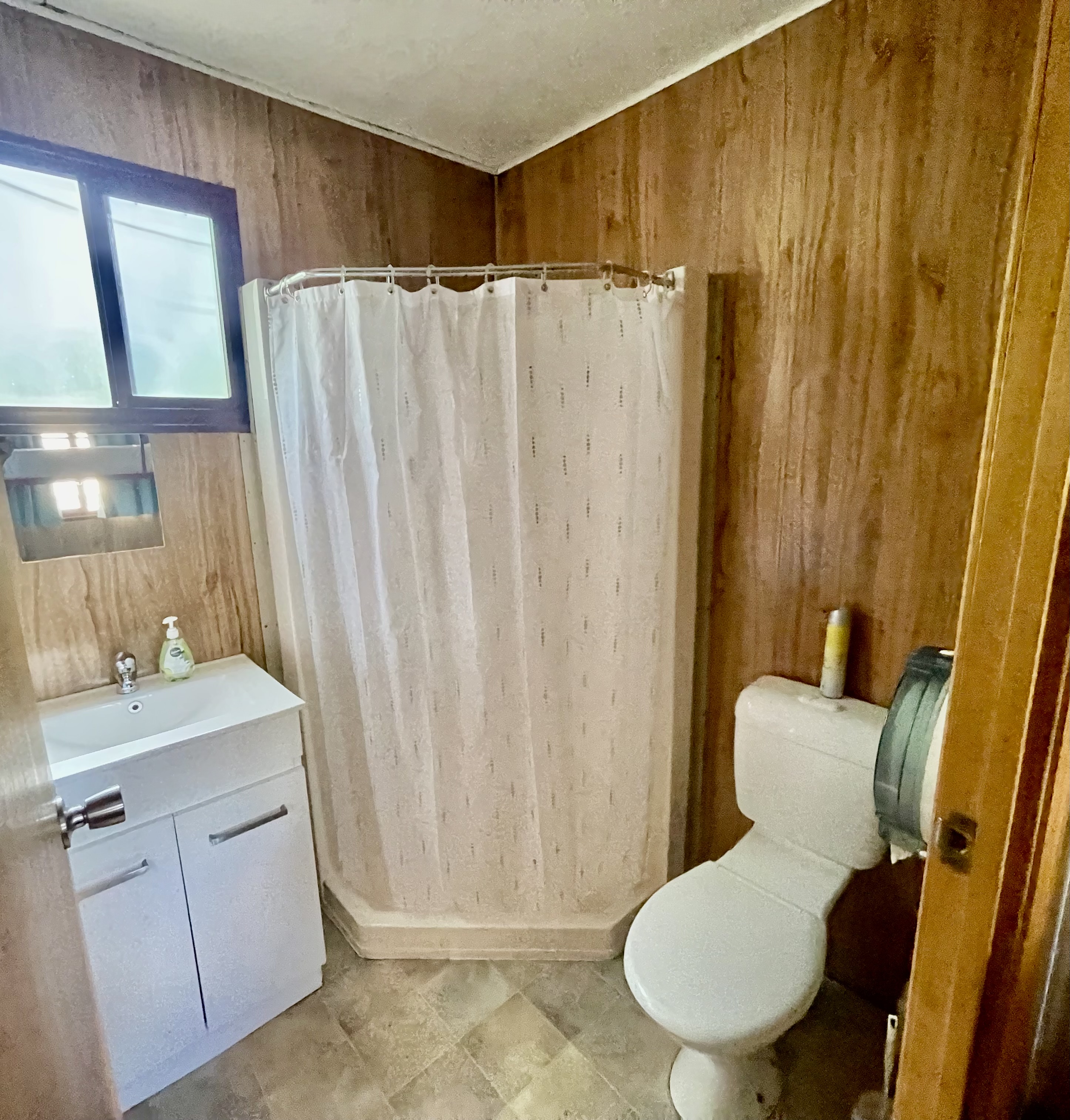 Studio Cabin with private courtyard, ensuite and kitchenette. Sleeps 4 in a double bed and two single beds.