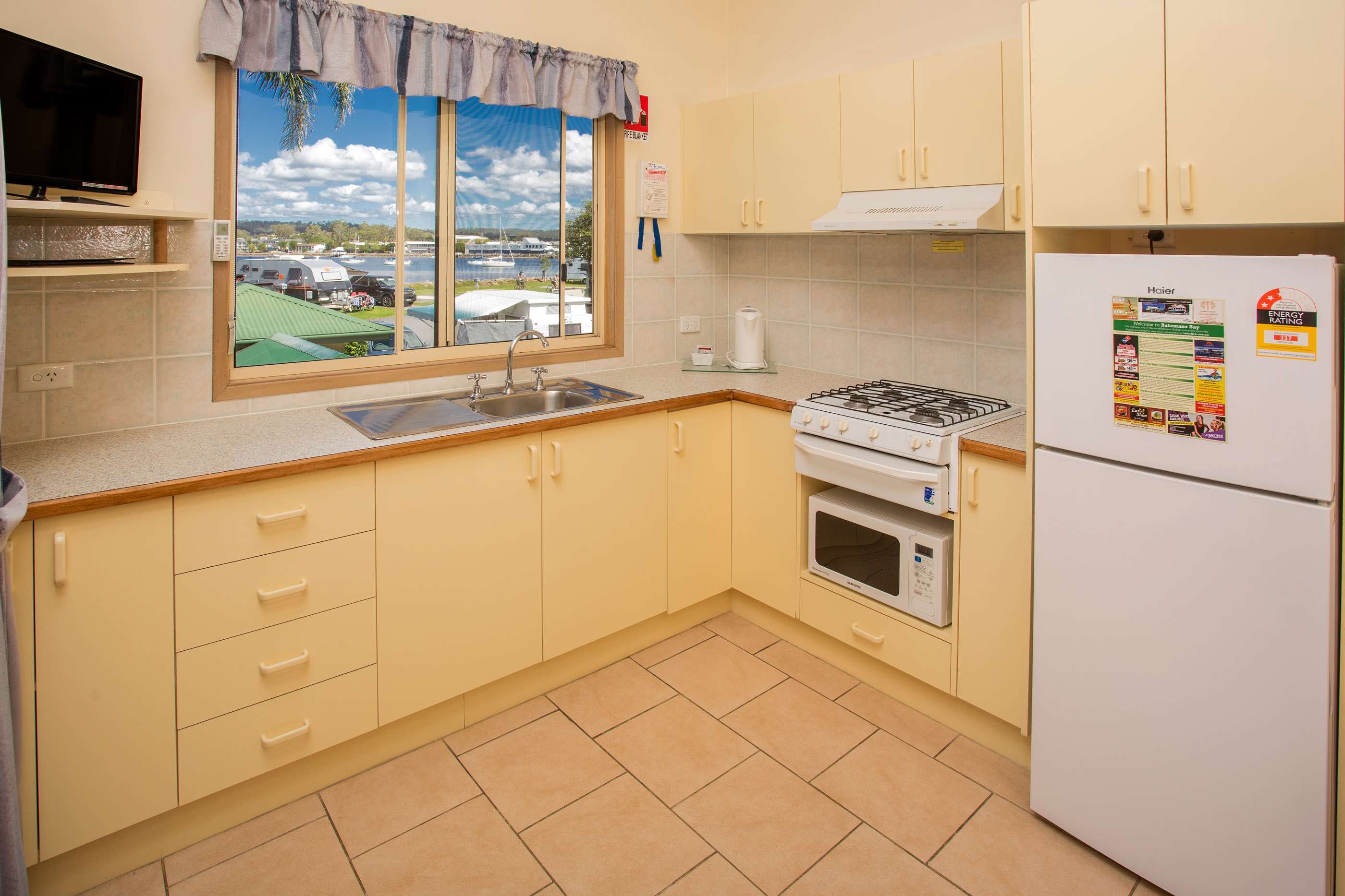 The true highlight of this cabin is your own private, elevated balcony. Imagine gathering with your loved ones for a meal as you take in the stunning waterfront scenery. It’s the perfect setting to enjoy your morning coffee or share a memorable family dinner as the sun sets over Batemans Bay. This is outdoor dining with a view that truly can't be beaten.