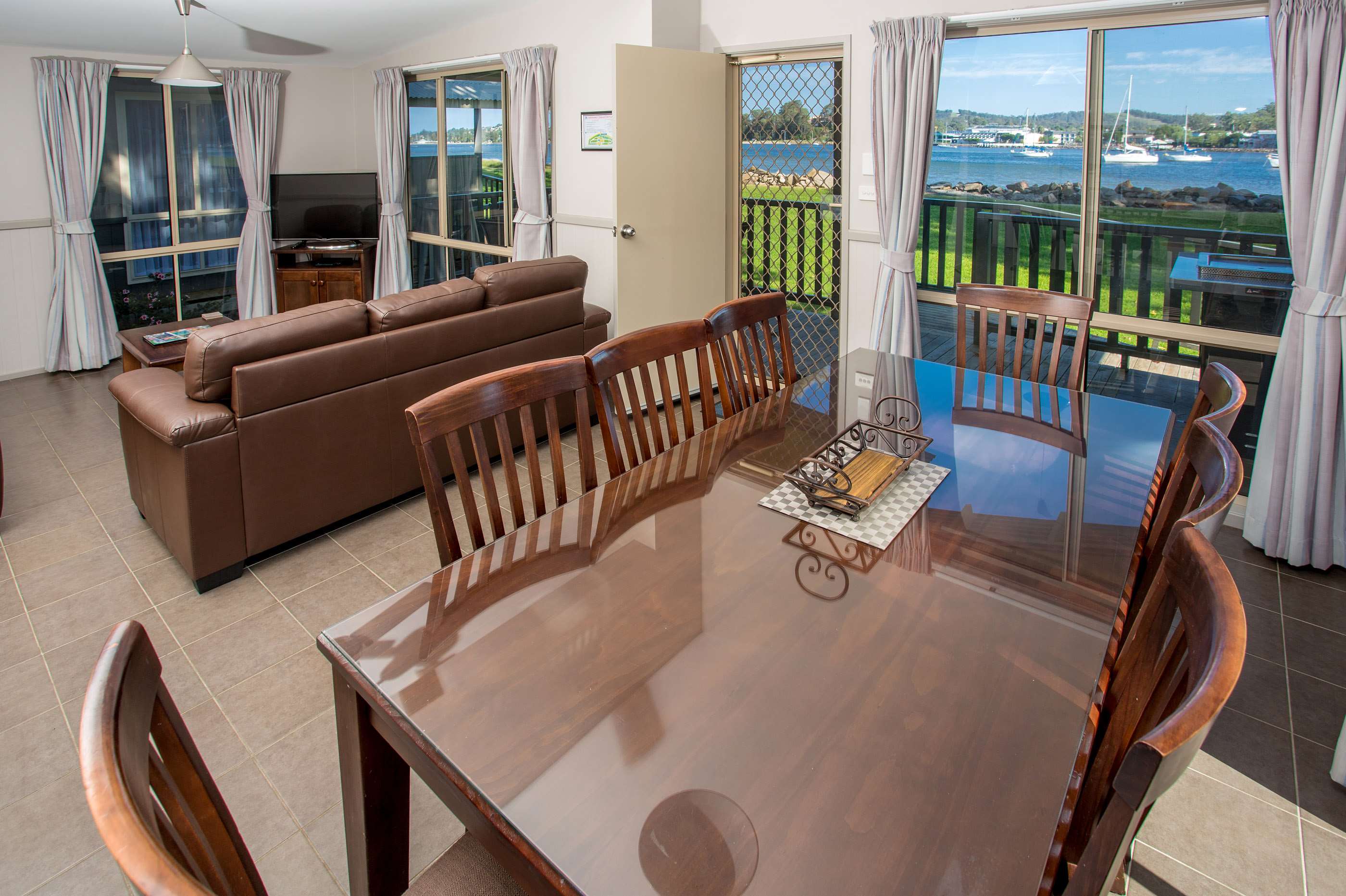 Our luxurious Waterfront Condo Spa - 3BR cabins have plenty of space for large families or couples travelling together. They feature two queen beds, four single bunks, fully-equipped kitchen, spacious balcony, a spa bath to sit back and relax in and more!