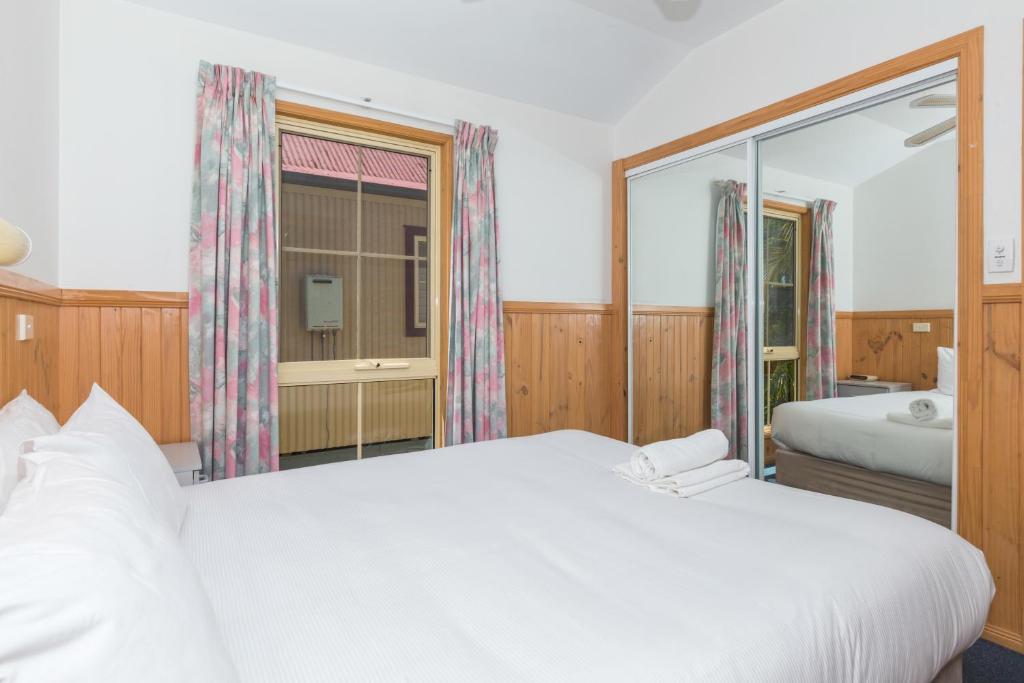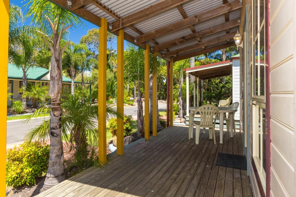 It includes a full kitchen, one bathroom, and air conditioning. A private verandah with outdoor seating provides a space to unwind. Pet-friendly and set among the resort grounds, it’s a great option for short stays or small families.