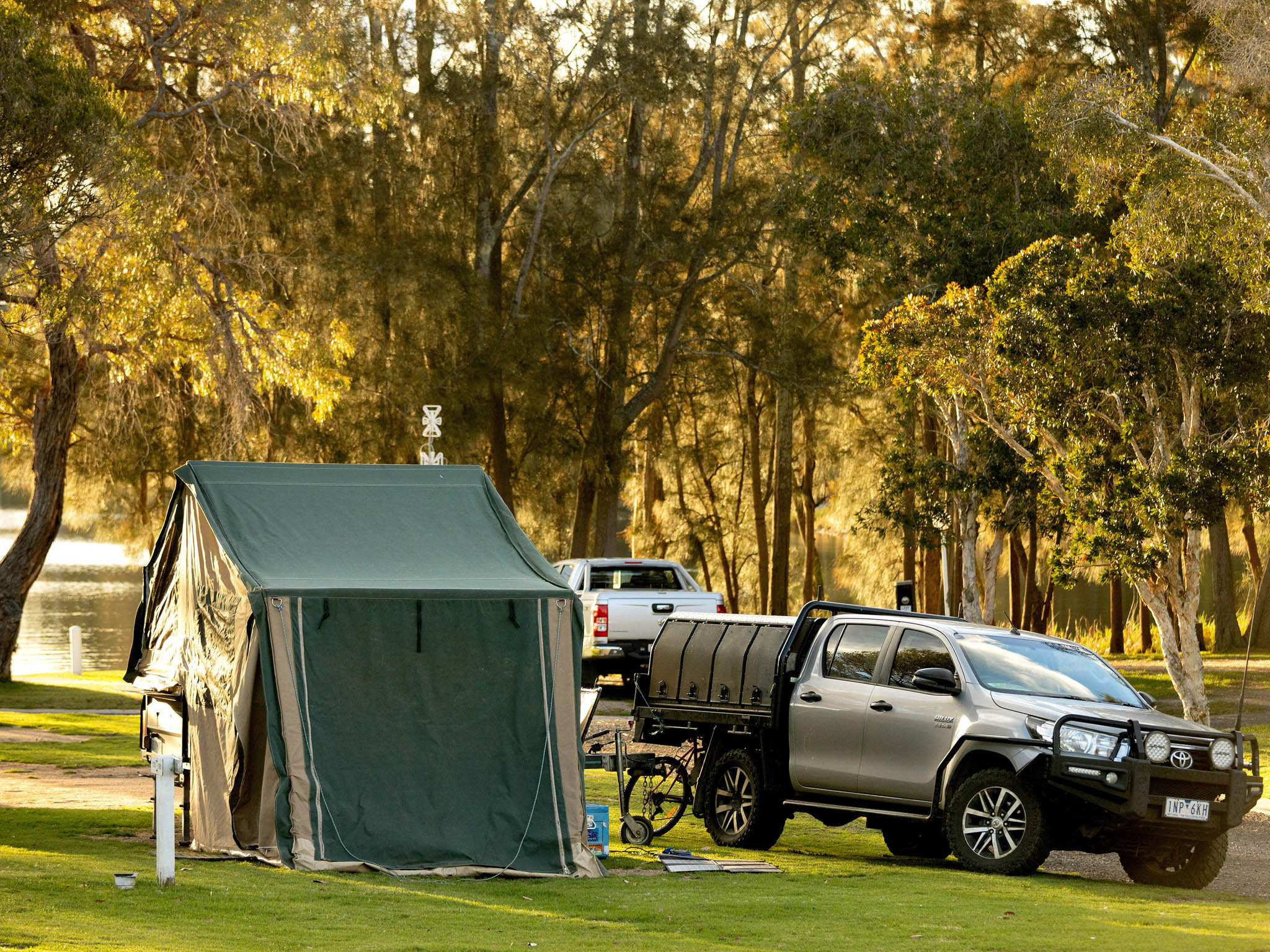 These easily accessed grass sites are a flexible option for tents, camper trailers and caravans of all sizes. Pet-friendly and powered, they include access to water and nearby communal amenities. Set within the campground’s natural surrounds, they offer a relaxed atmosphere just a short walk from the lake and park facilities.